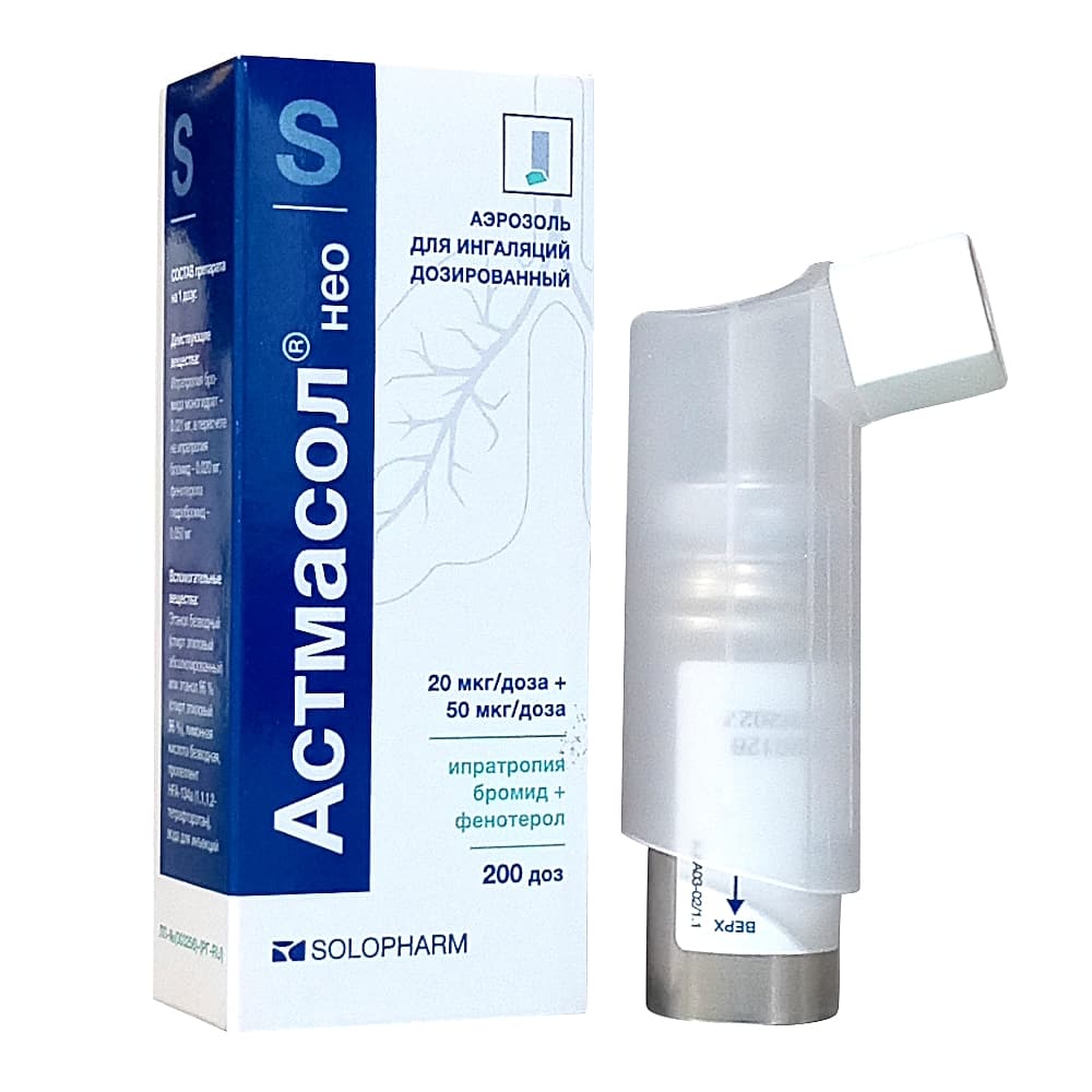 Астмасол Нео 20 мкг+50 мкг/доза 200 доз, аэрозоль для ингаляций дозированный.