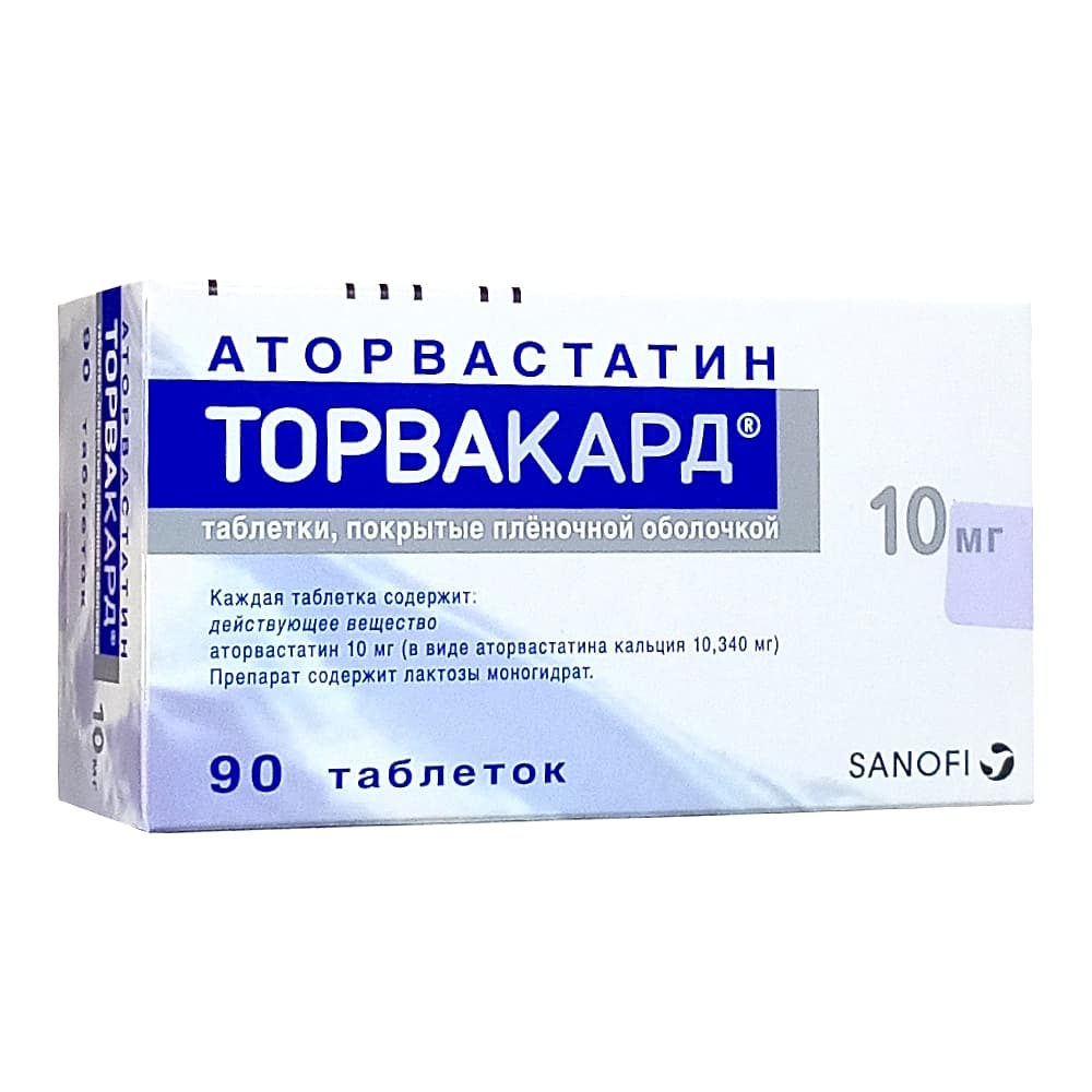 Торвакард таблетки, покрытые оболочкой, 10 мг, 90 шт.