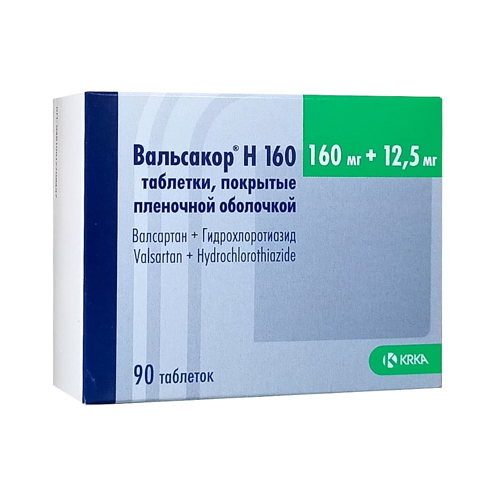 Вальсакор Н160 таблетки, покрытые оболочкой, 160 мг + 12,5 мг, 90 шт.