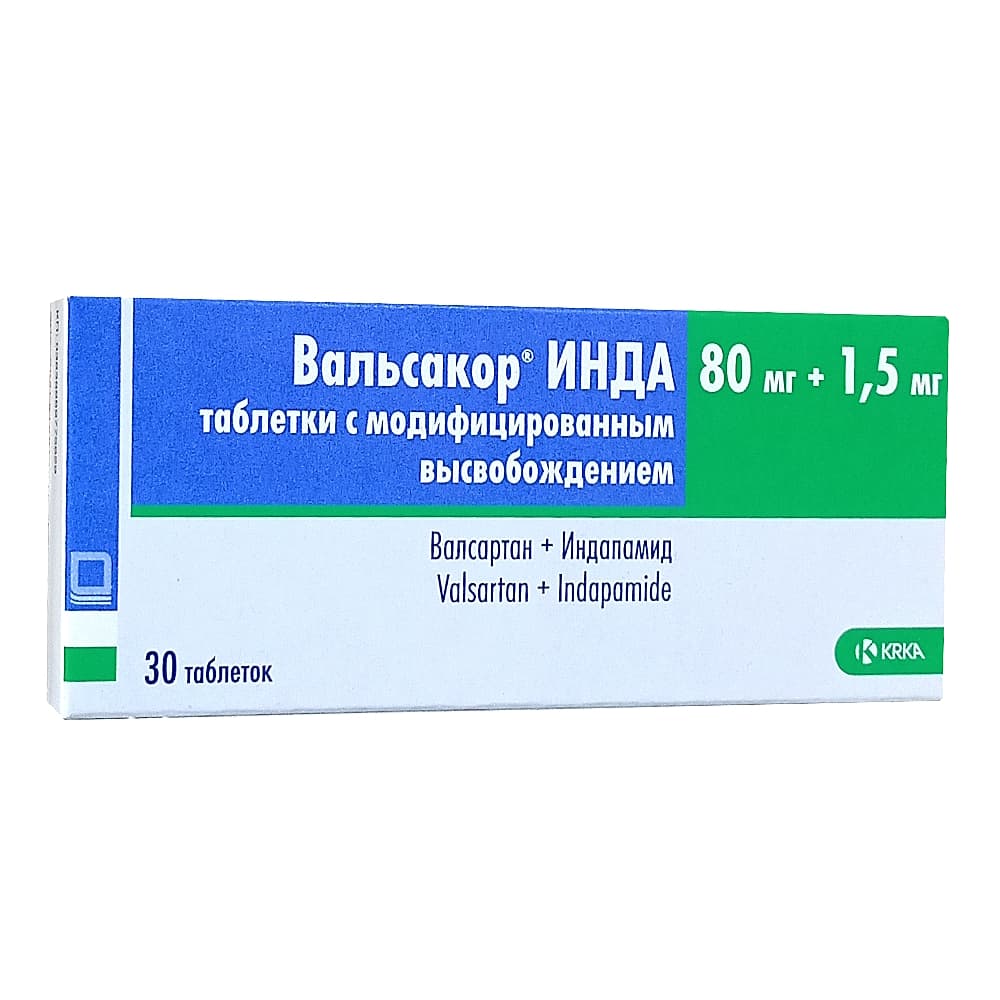 Вальсакор Инда 80мг + 1,5мг, таблетки 30шт.