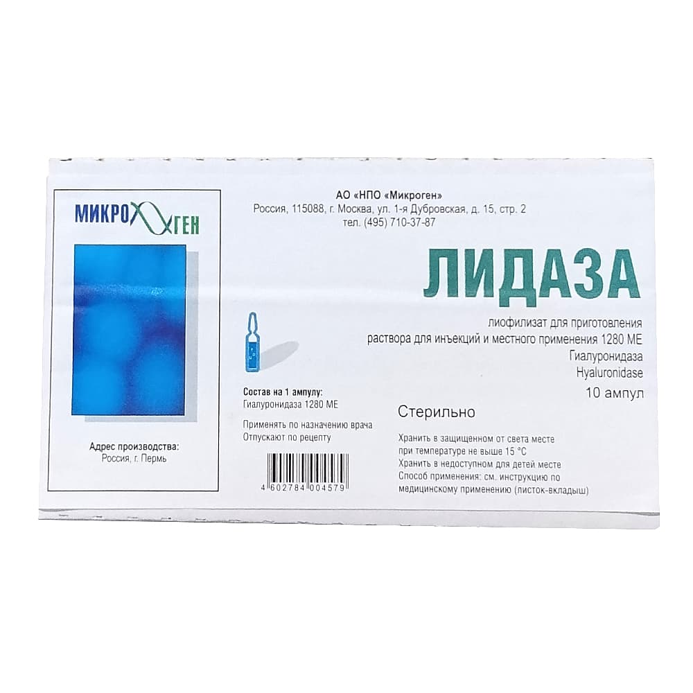 Лидаза 1280 МЕ, лиофилизат для приготовления раствора ампулы, 10 шт.