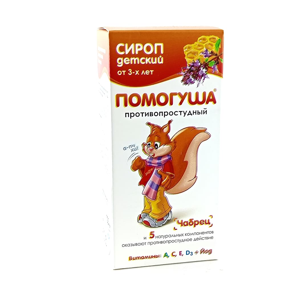 Сироп детский «Помогуша» противопростудный рекомендуется в качестве диетического профилактического продукта для детей от 3-х лет, дополнительного источника витаминов С, А, Е, D3, йода, оказывающего противопростудное действие.