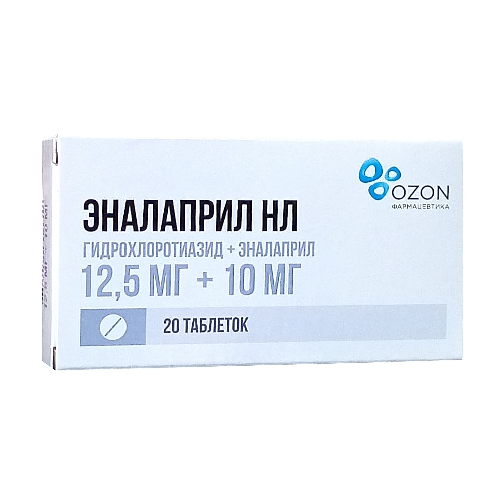 Эналаприл НЛ 12,5 мг + 10 мг, 20 шт.