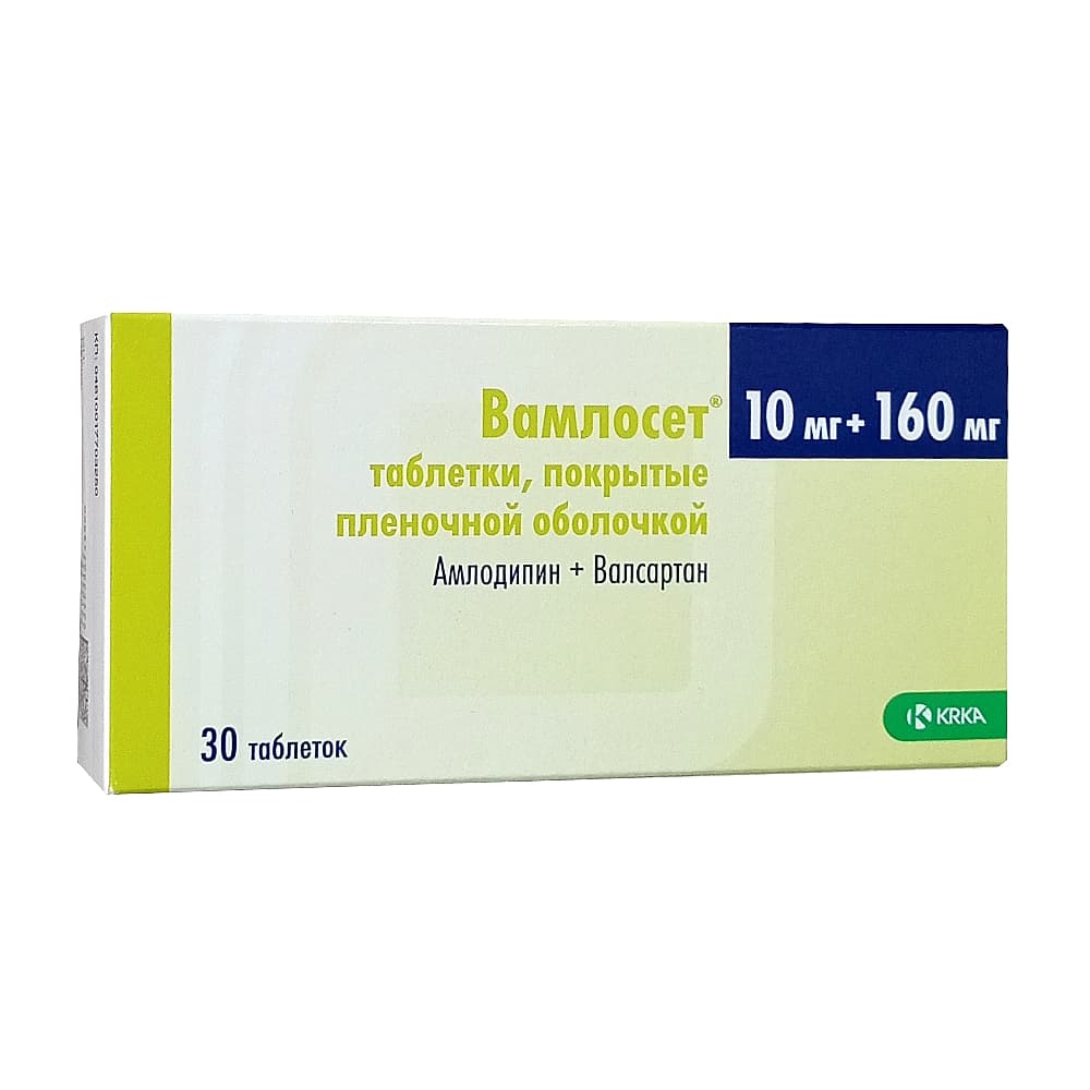 Вамлосет таблетки, покрытые оболочкой, 10 мг + 160 мг, 30 шт.