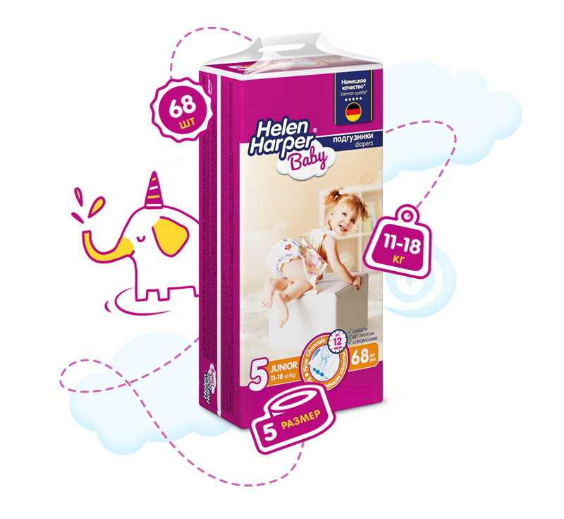 Helen Harper Baby Подгузники детские 5 Junior 11-18 кг, 68 шт