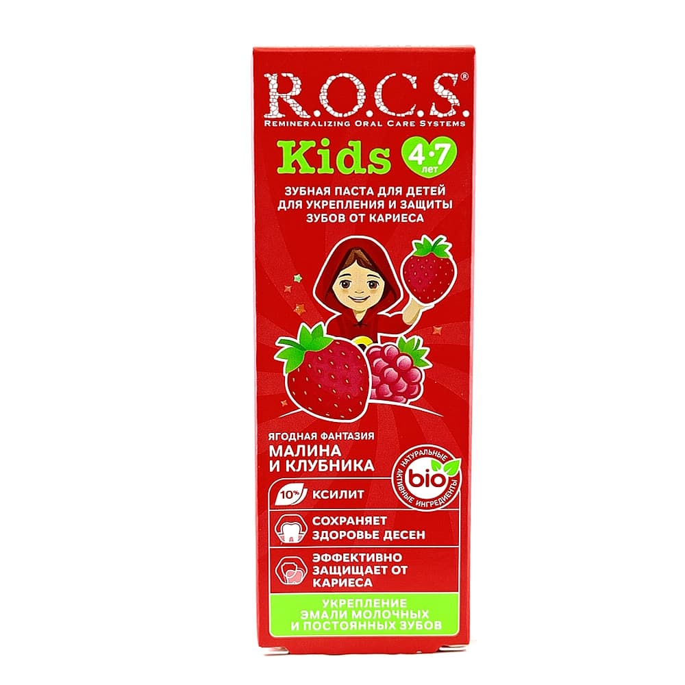 ROCS Kids зубная паста со вкусом малины и клубники "Ягодная фантазия" от 4-х до 7-ми лет, 45 гр.