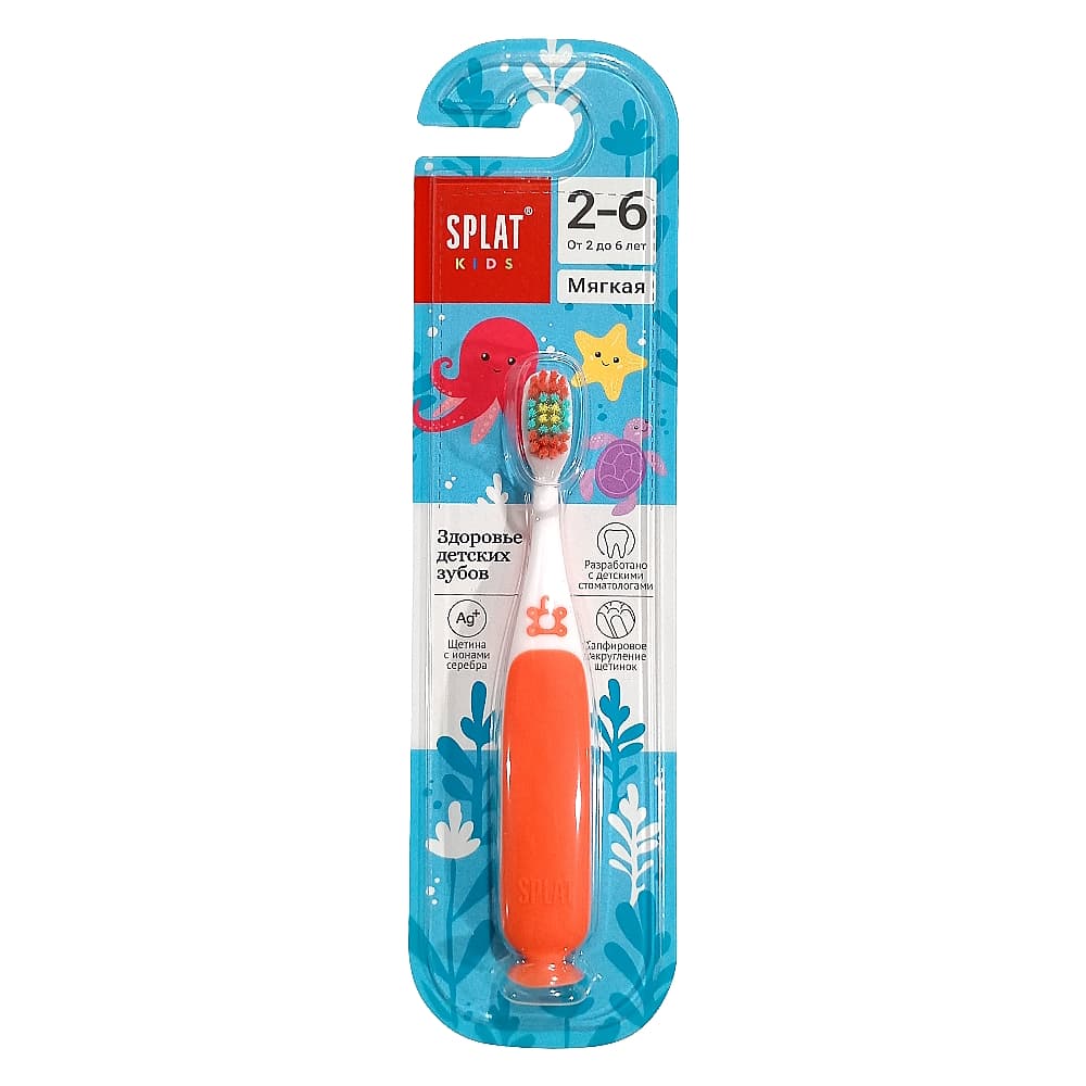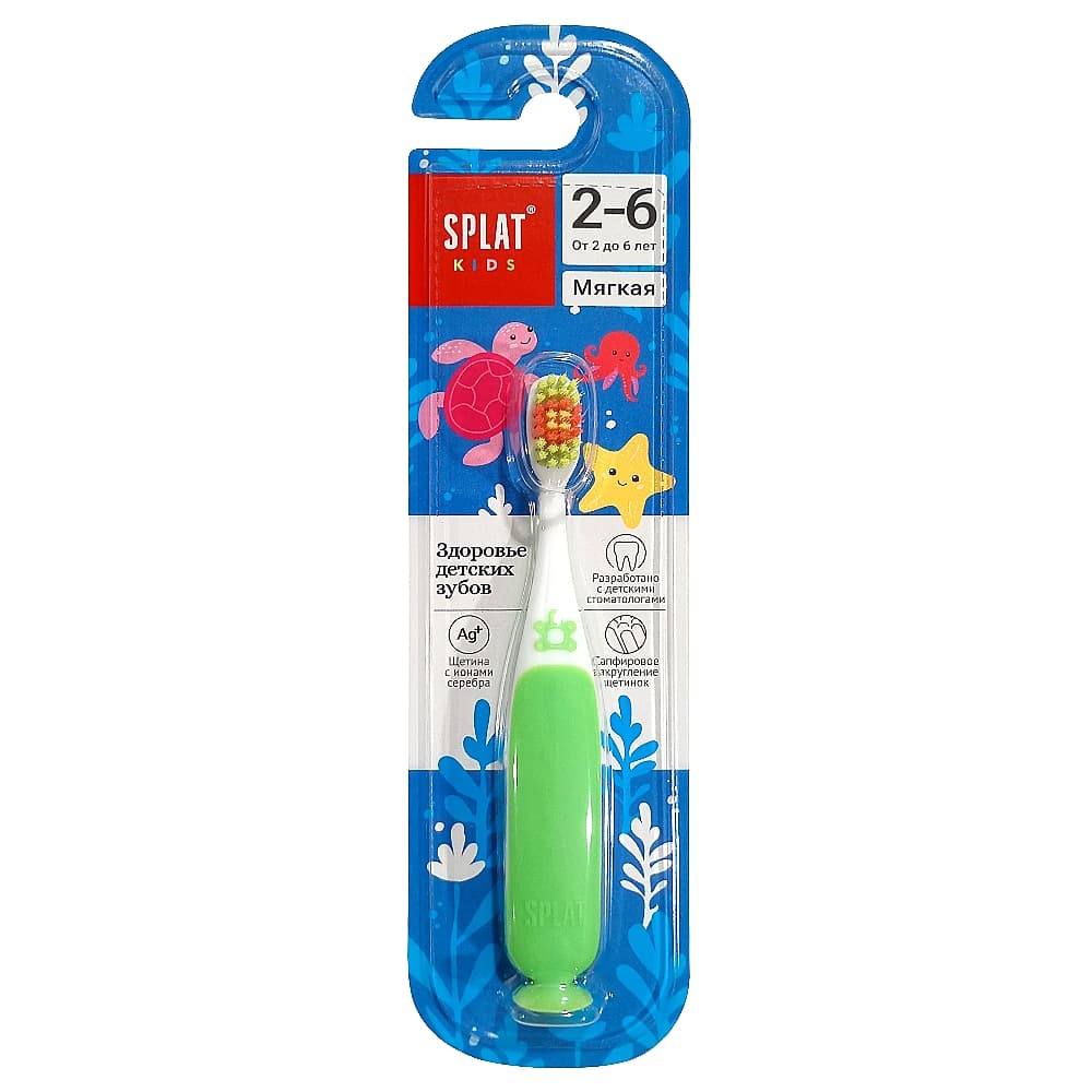 SPLAT Kids детская зубная щетка от 2 до 6 лет с ионами серебра, мягкая.