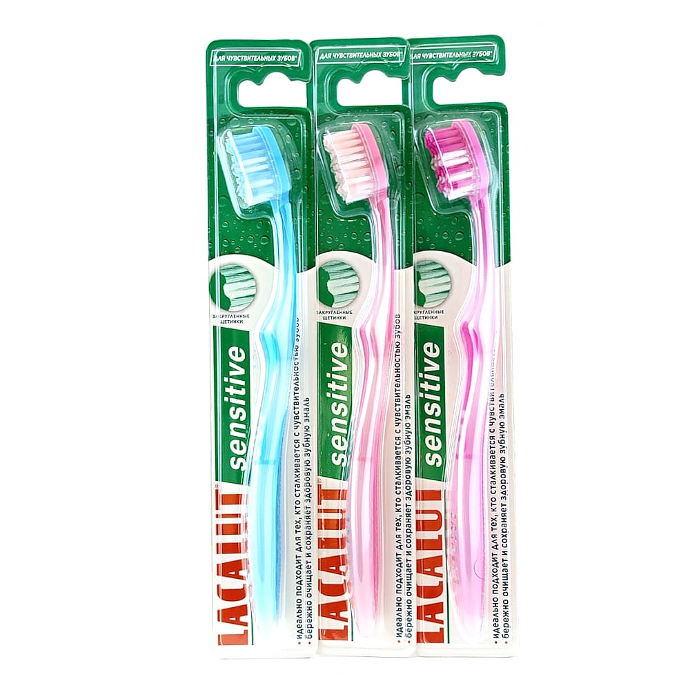 Зубная щетка LACALUT sensitive рекомендуется для чувствительных зубов, имеет очень мягкие, закругленные щетинки Supersoft. Зубная щетка LACALUT sensitive имеет волнообразный профиль для чистки межзубных поверхностей и оголенной пришеечной области. Щетка обеспечивает деликатное и качественное удаление налета с удаленных участков коренных зубов за счет клиновидной головки.