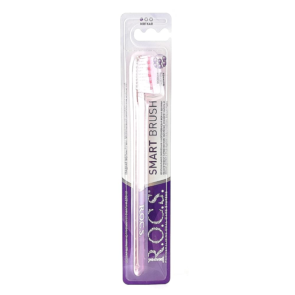 Зубная щетка R.O.C.S. Smart brush модельная с мягкой щетиной обеспечивает эффективный уход за зубами и деснами. Многоуровневая подстрижка щетины, скошенная к концу головки щетки, повышает качество чистки поверхности зубов и позволяет с легкостью проникать в труднодоступные участки зубного ряда. Закругленные, отполированные на концах щетинки, не повреждают эмаль и зубные реставрации, не травмируют десны. Тонкая плоская ручка, выполненная из безопасного, нетоксичного пластика, снижает излишнее давление во время чистки и способствует правильной технике. Множество вариантов комбинации цвета ручки и щетины позволяют выбрать лучшую щетку, подчеркивающую ваше настроение и индивидуальность!