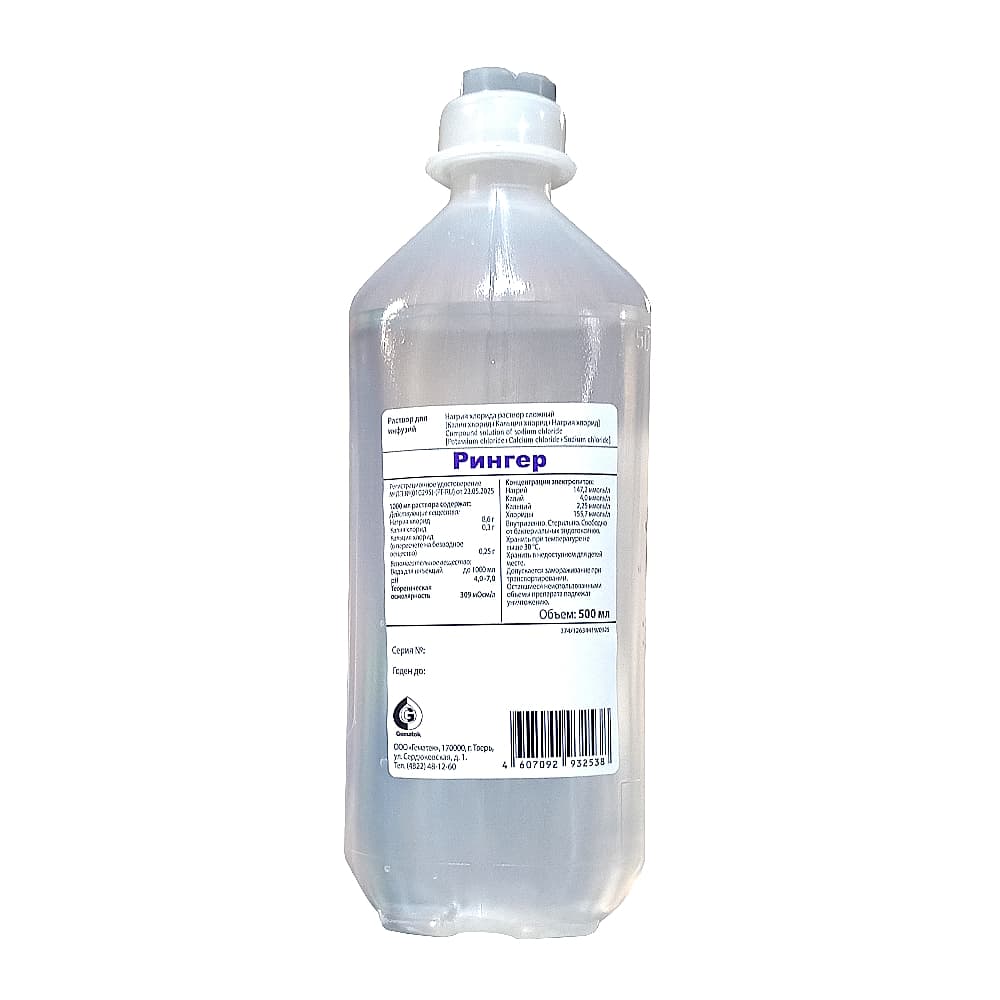 Этот раствор предназначен для внутривенного применения с использованием стерильного оснащения. Рекомендовано менять внутривенную систему как минимум каждые 24 часа. Врач должен также учитывать возможность развития побочных реакций на препараты, которые применяются одновременно с раствором Рингера.