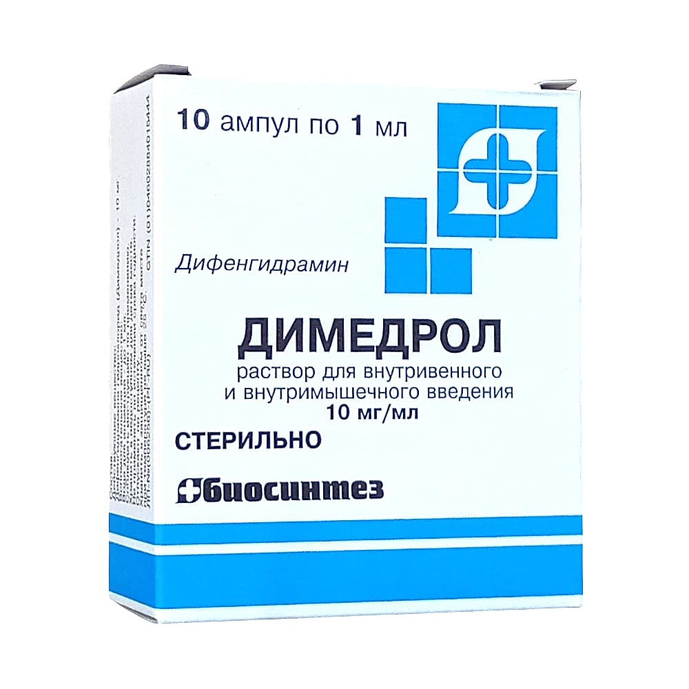 Димедрол раствор в ампулах 10мг/мл 1мл №10.