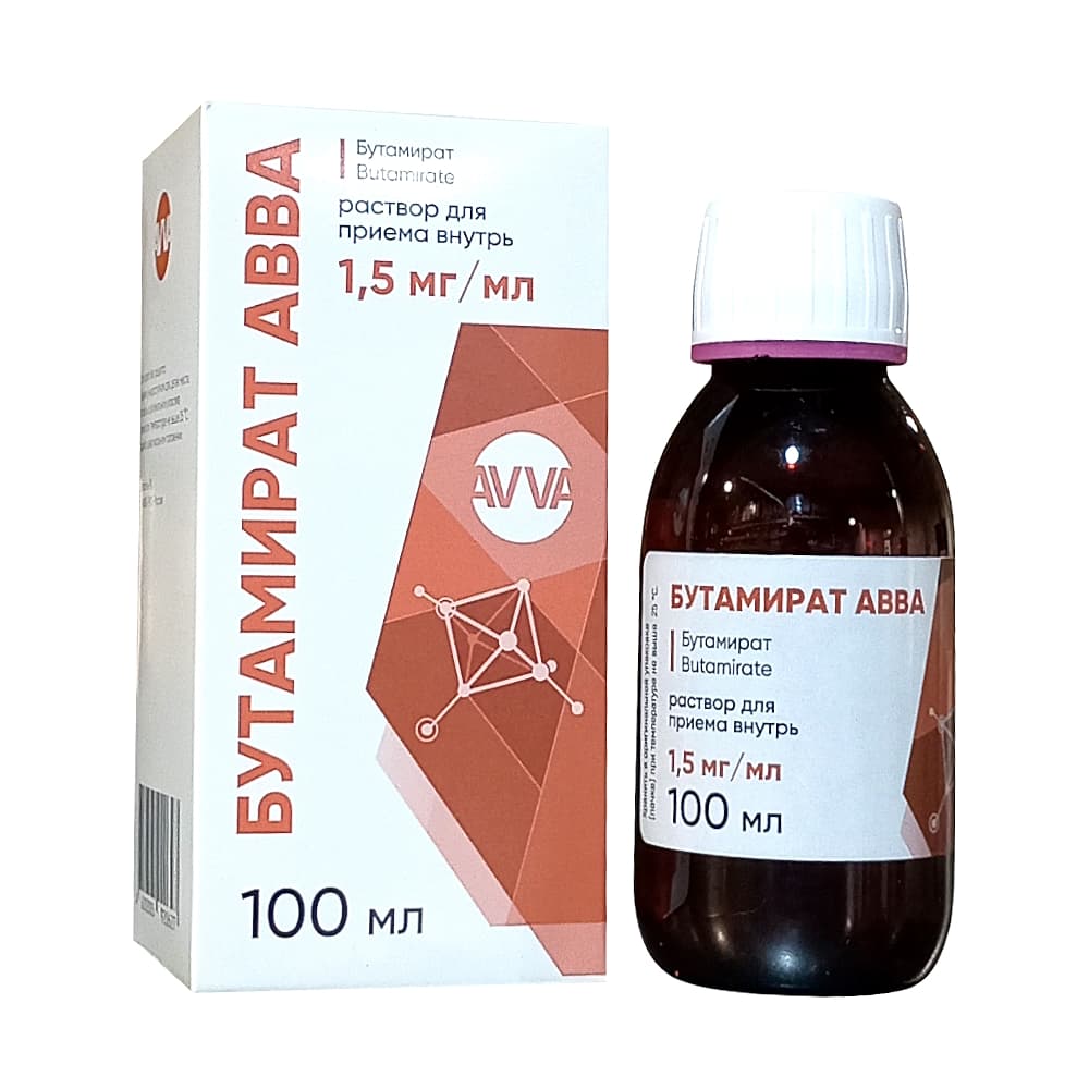 Бутамират АВВА раствор для приема внутрь 1,5 мг/мл, 100 мл.