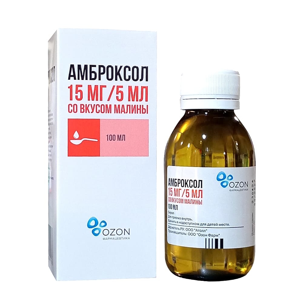 Амброксол 15 мг/5 мл сироп 100 мл флакон с малиной