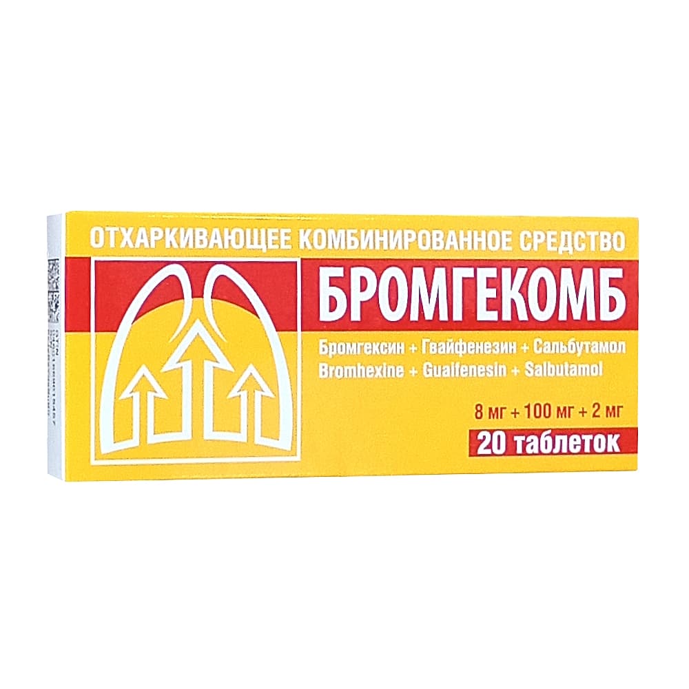 БРОМГЕКОМБ - комбинированный препарат, содержащий фиксированные дозы бромгексина, гвайфенезина и сальбутамола.