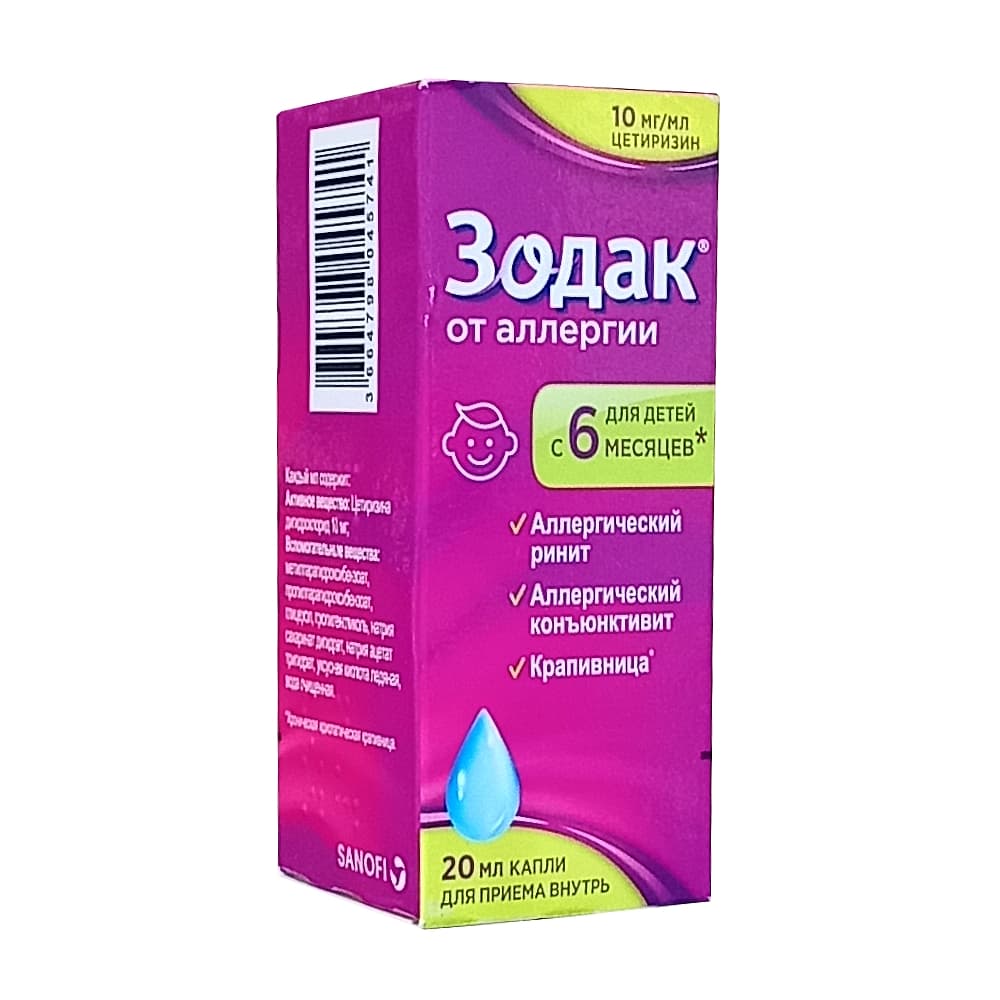 Зодак капли для приема внутрь 10 мг/ мл, 20 мл.