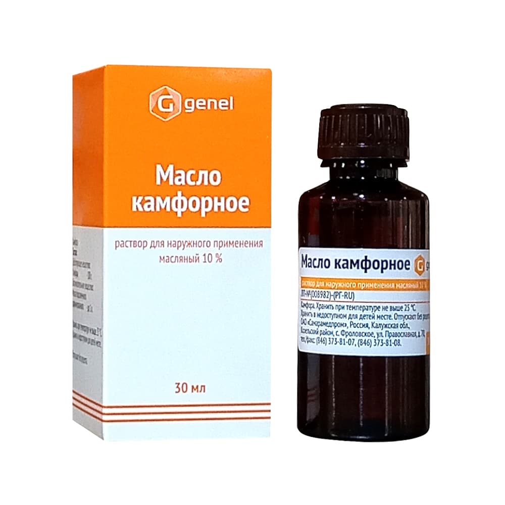 Камфорное масло, раствор 10%, 30 мл.