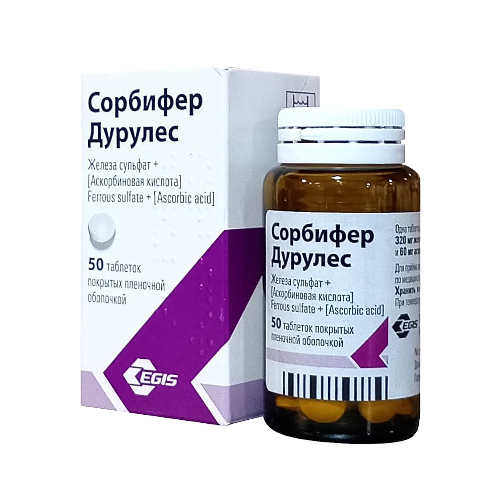 - С этидроновой кислотой: снижается активность этидроновой кислоты. Ее следует принимать не ранее, чем через 2 часа после приема препарата Сорбифер Дурулес.