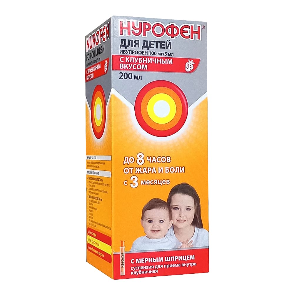 Нурофен суспензия для детей с клубничным вкусом, 200 мл.