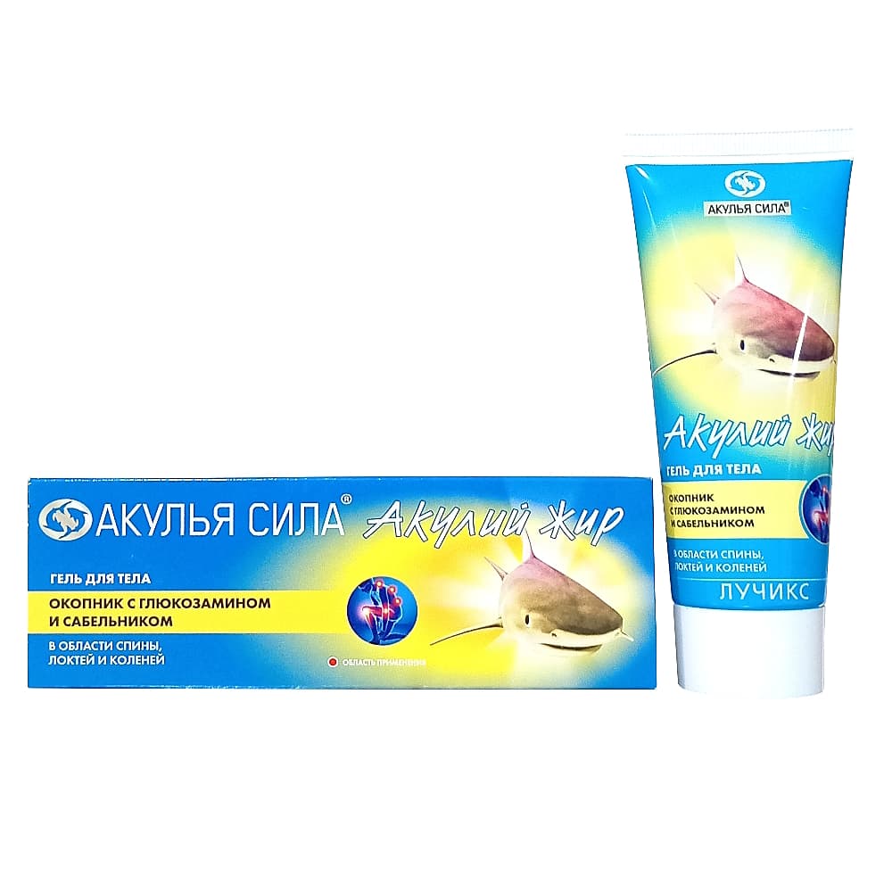 АКУЛИЙ ЖИР ГЕЛЬ ОКОПНИК С ГЛЮКОЗАМИНОМ И САБЕЛЬНИКОМ ДЛЯ ТЕЛА - рекомендуется применять при боли в области спины, поясницы, локтей и коленей.