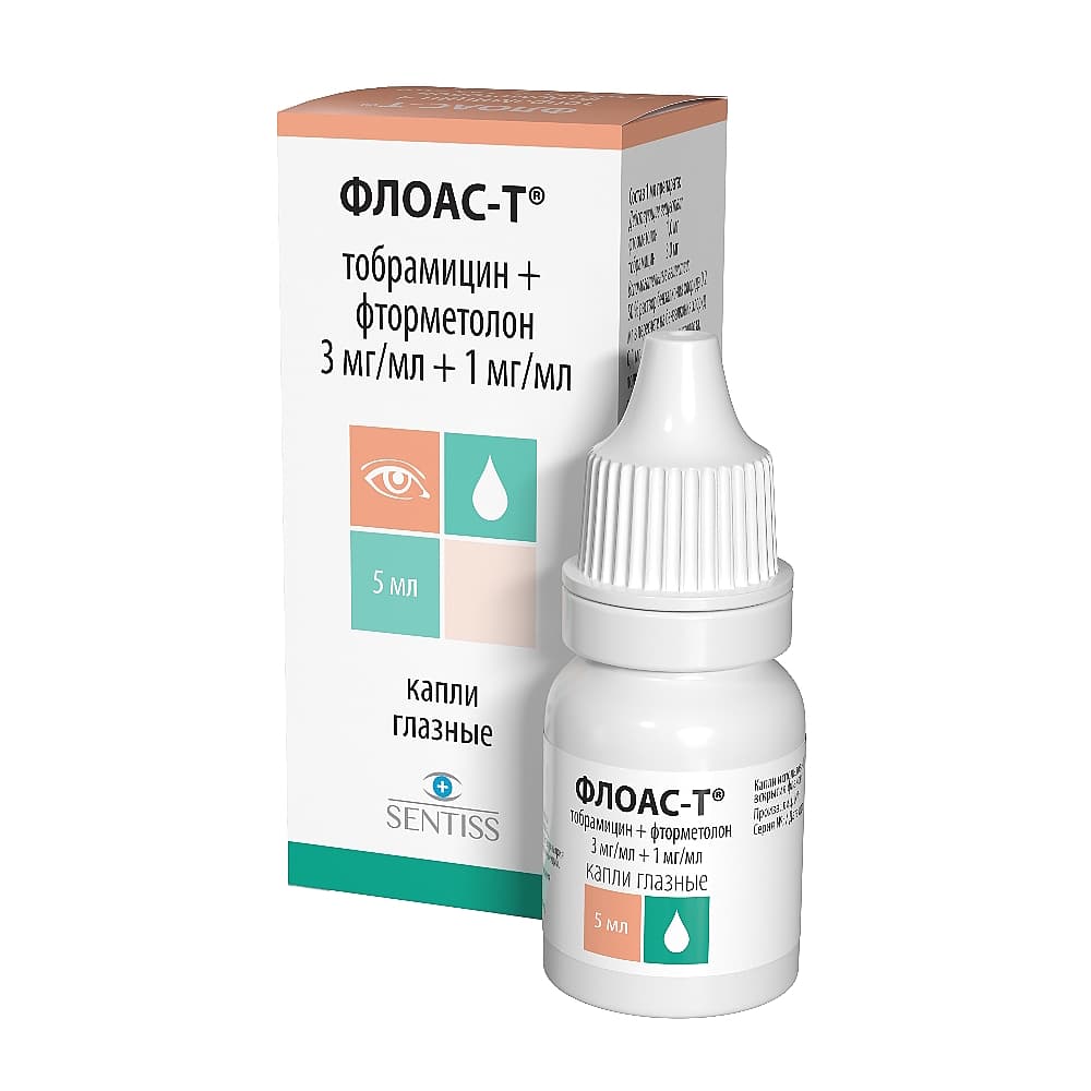 Флоас-Т, 3 мг/мл + 1 мг/мл, капли глазные, 5 мл.