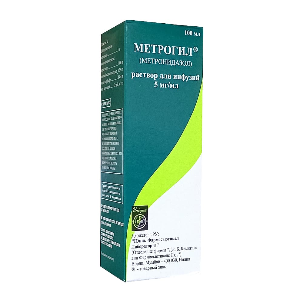 Метрогил раствор для в/в введения 5 мг/мл, 100 мл