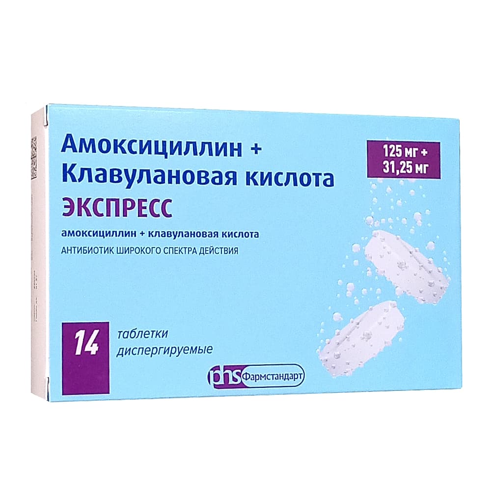 Амоксициллин+Клавулановая кислота таблетки 125 мг+31,25мг, 14 шт