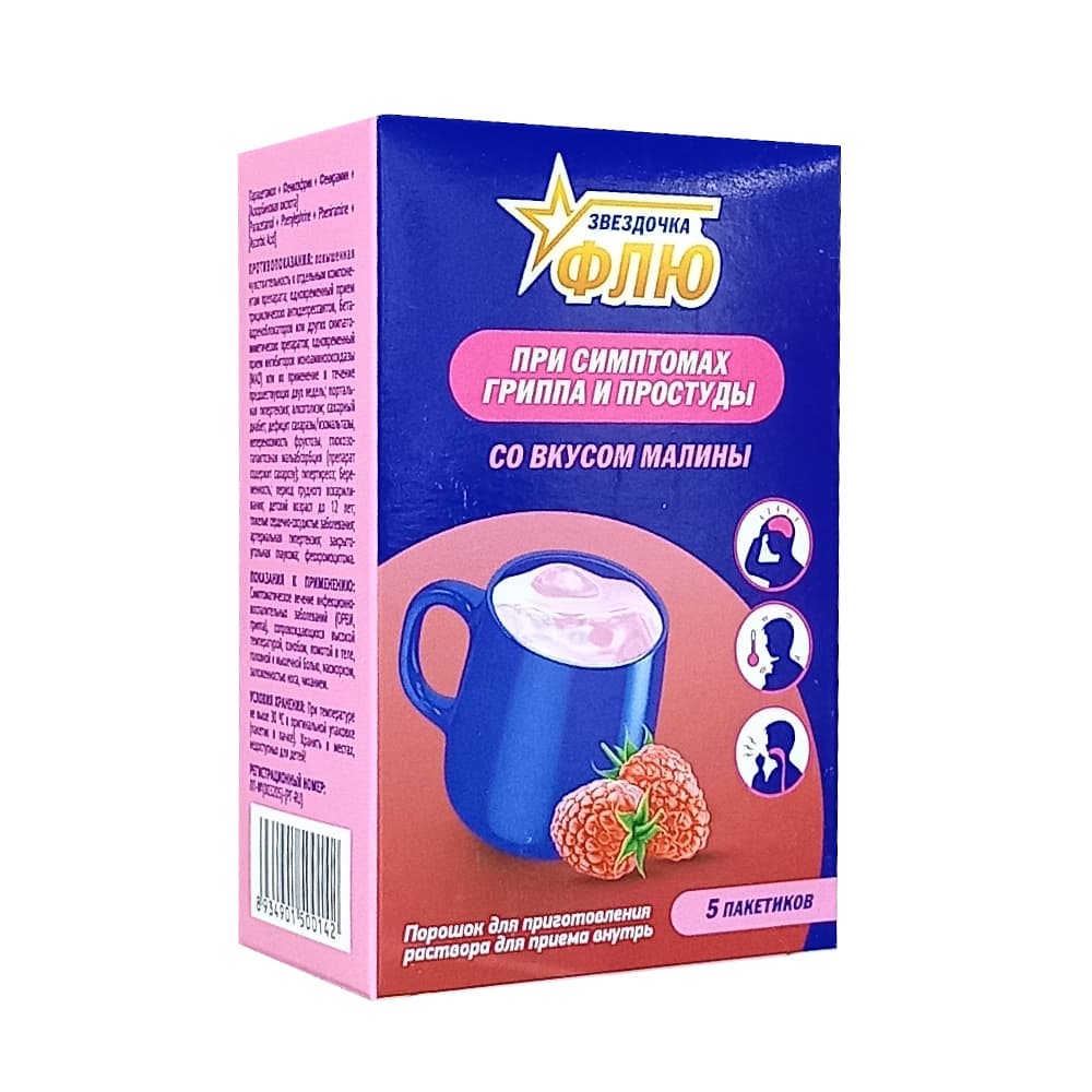Звездочка Флю порошок для приготовления раствора в пакетиках 15 гр, 5 шт. Малина