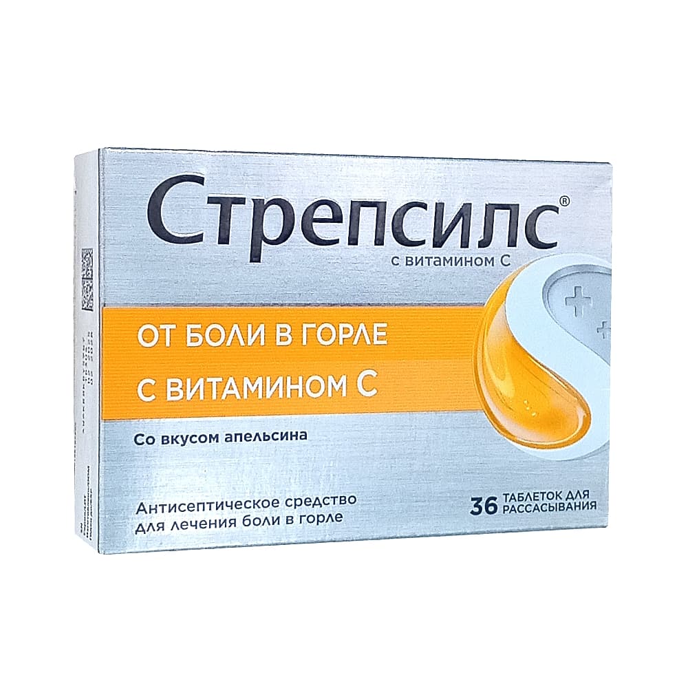 Стрепсилс с витамином С таблетки для рассасывания, 36 шт. апельсиновые