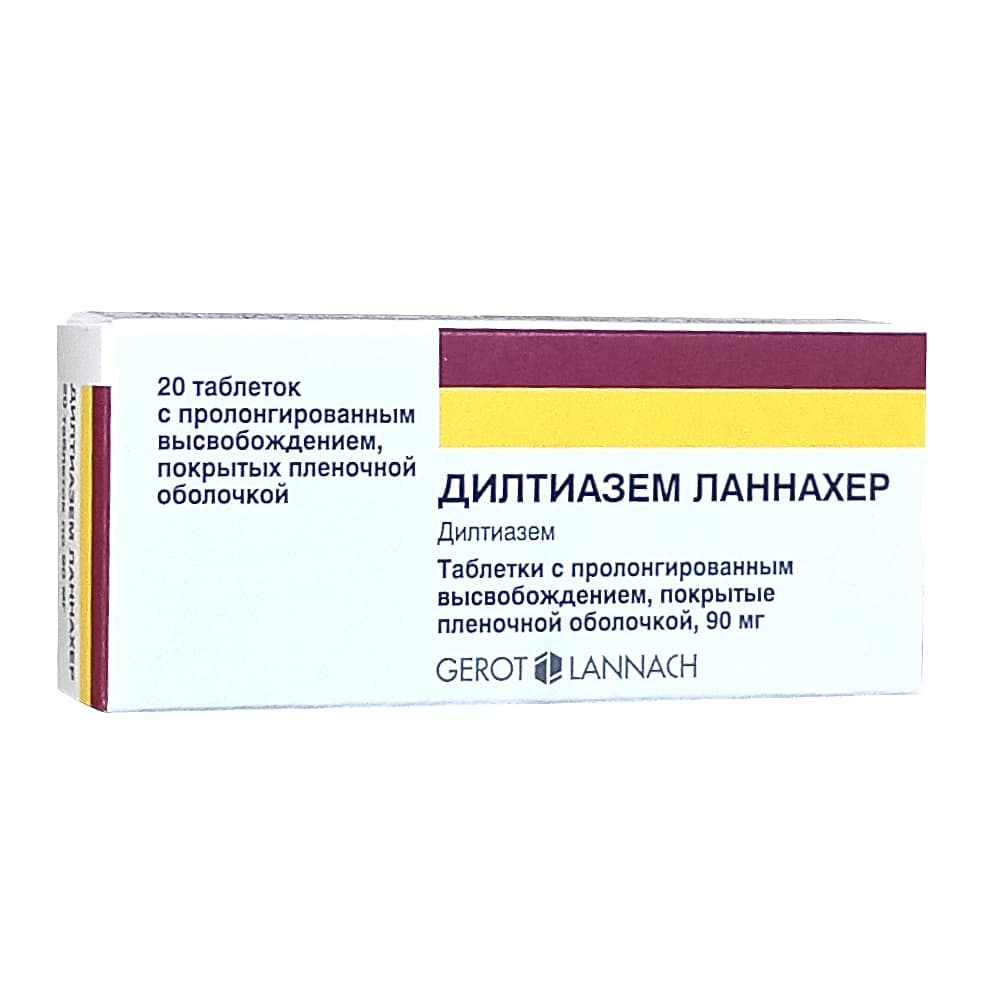 Дилтиазем ланнахер таблетки пролонгированные 90 мг, 20 шт