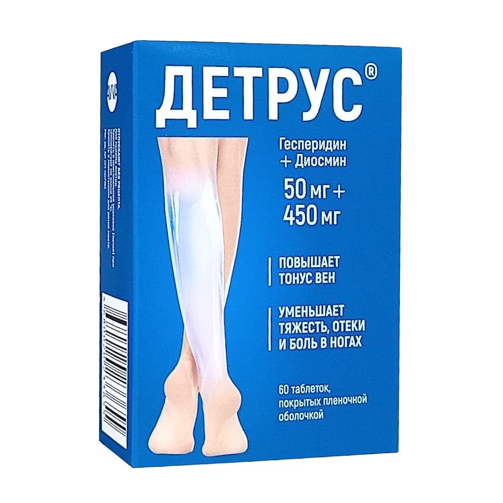 Препарат Детрус показан для терапии симптомов хронических заболеваний вен (устранения и облегчения симптомов).
