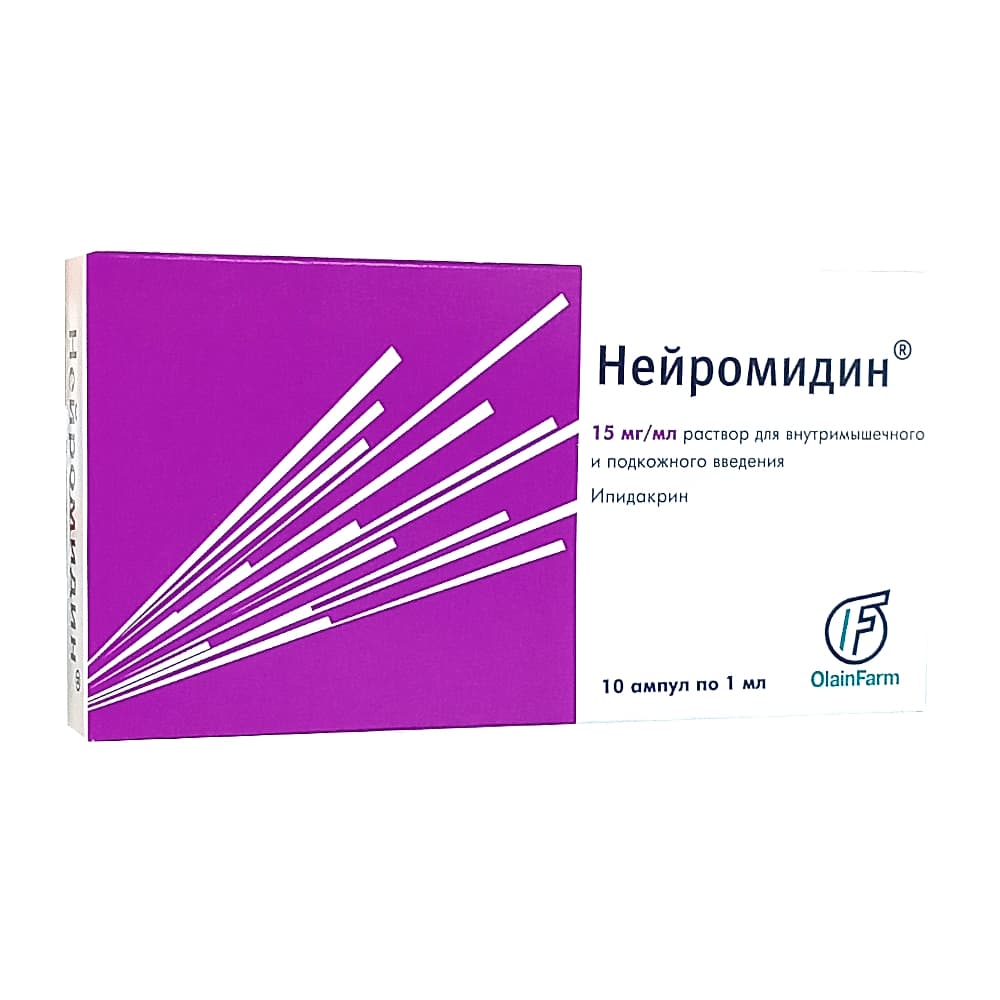 Нейромидин 15 мг/мл, раствор для внутримышечного и подкожного введения, 1 мл, 10 ампул.