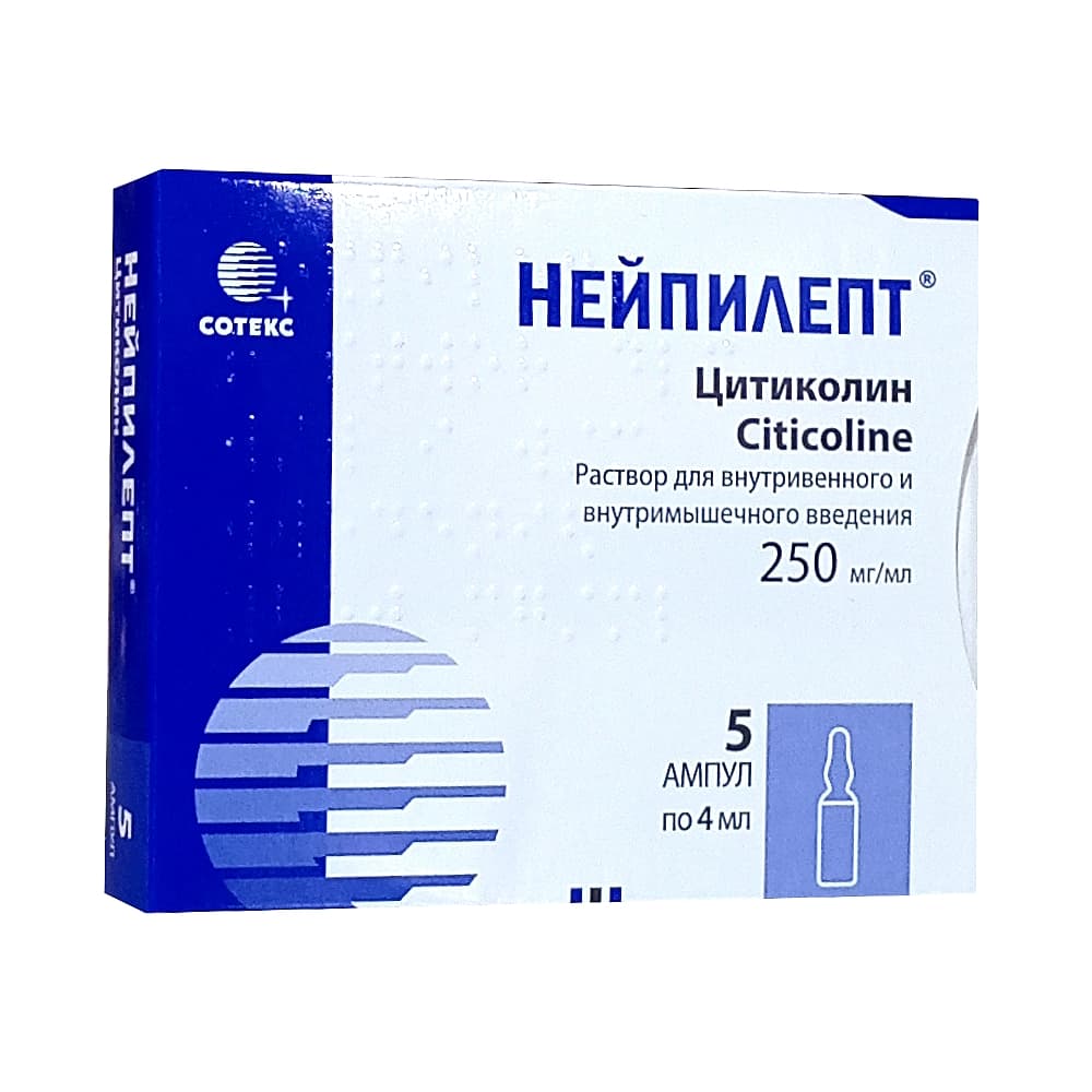 Рекомендованная доза препарата НЕИПИЛЕПТ® составляет 500–2000 мг цитиколина в день. Препарат вводят внутривенно или внутримышечно. Дозировка и длительность лечения в зависимости от тяжести симптомов заболевания. Возможен переход на пероральные лекарственные формы.