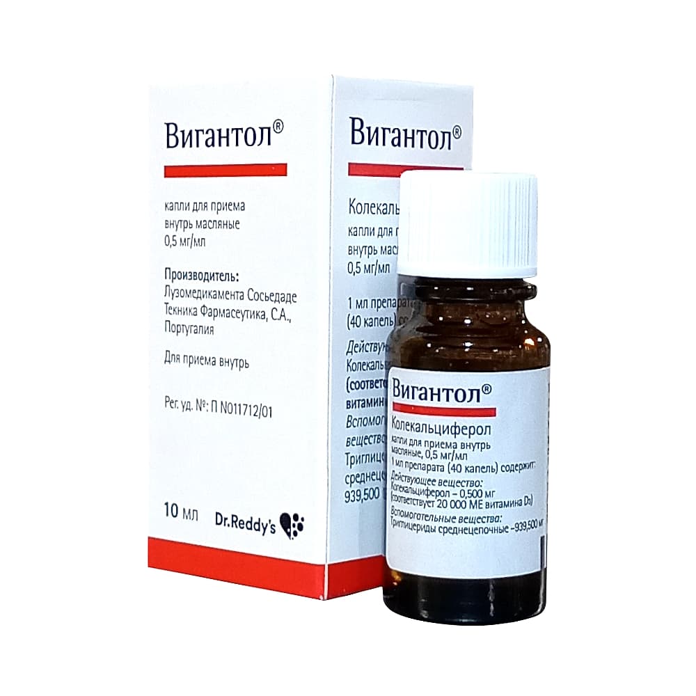 - Профилактика рахита: взрослые и дети принимают по 1 капле (соответствует 500 ME витамина D3) в день. У новорожденных дозировка препарата должна определяться индивидуально врачом, препарат назначают со 2-ой недели жизни. Доношенным здоровым детям Вигантол рекомендуется принимать по 1 капле (соответствует 500 ME витамина D3) в день, недоношенным детям - по 2 капли (соответствует 1000 ME витамина D3) в день. Препарат назначают в течение первого и второго года жизни, особенно в течение зимних месяцев. Капли препарата разводят в чайной ложке воды, молока или детского питания. Если капли добавляются в бутылочку или в ложку с питательной смесью, необходимо убедиться в полном приеме пищи, т.к. в противном случае нельзя гарантировать прием всей дозы препарата. Капли препарата следует добавлять только в приготовленную и надлежащим образом охлажденную питательную смесь.