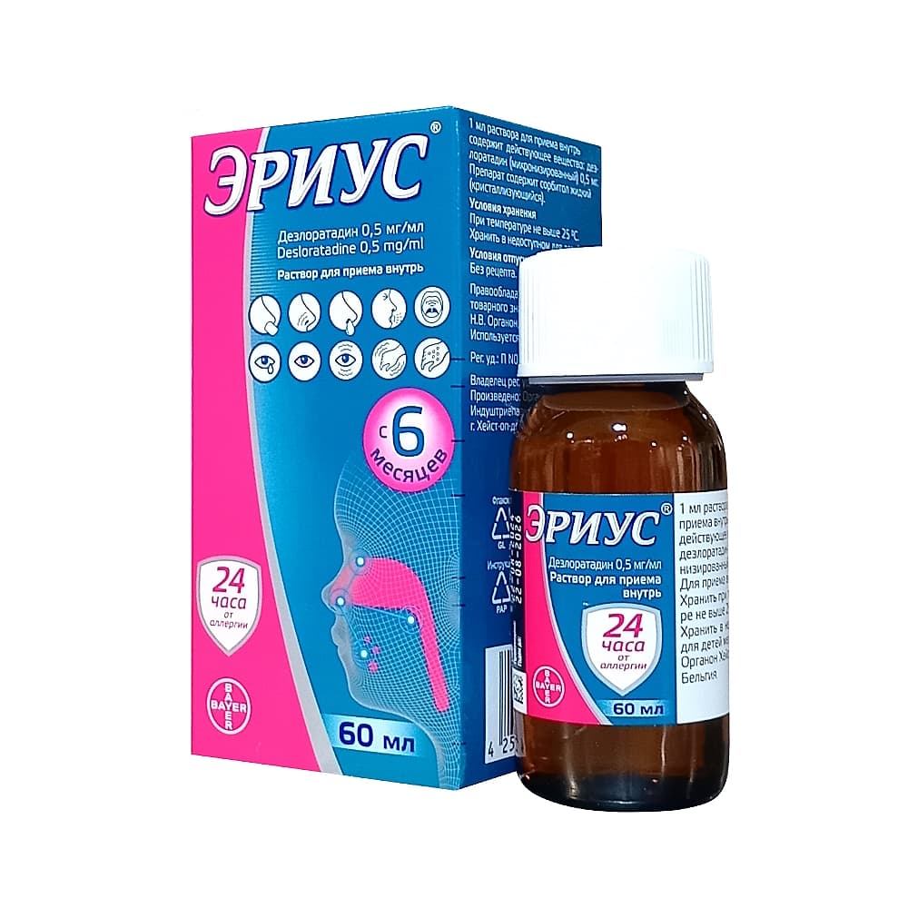 Характеристика Бренд Эриус Изготовитель Органон Хейст бв Страна БЕЛЬГИЯ Рецептурный Нет Форма выпуска Сироп Беременность Запрещено Возраст С 6-ти месяцев