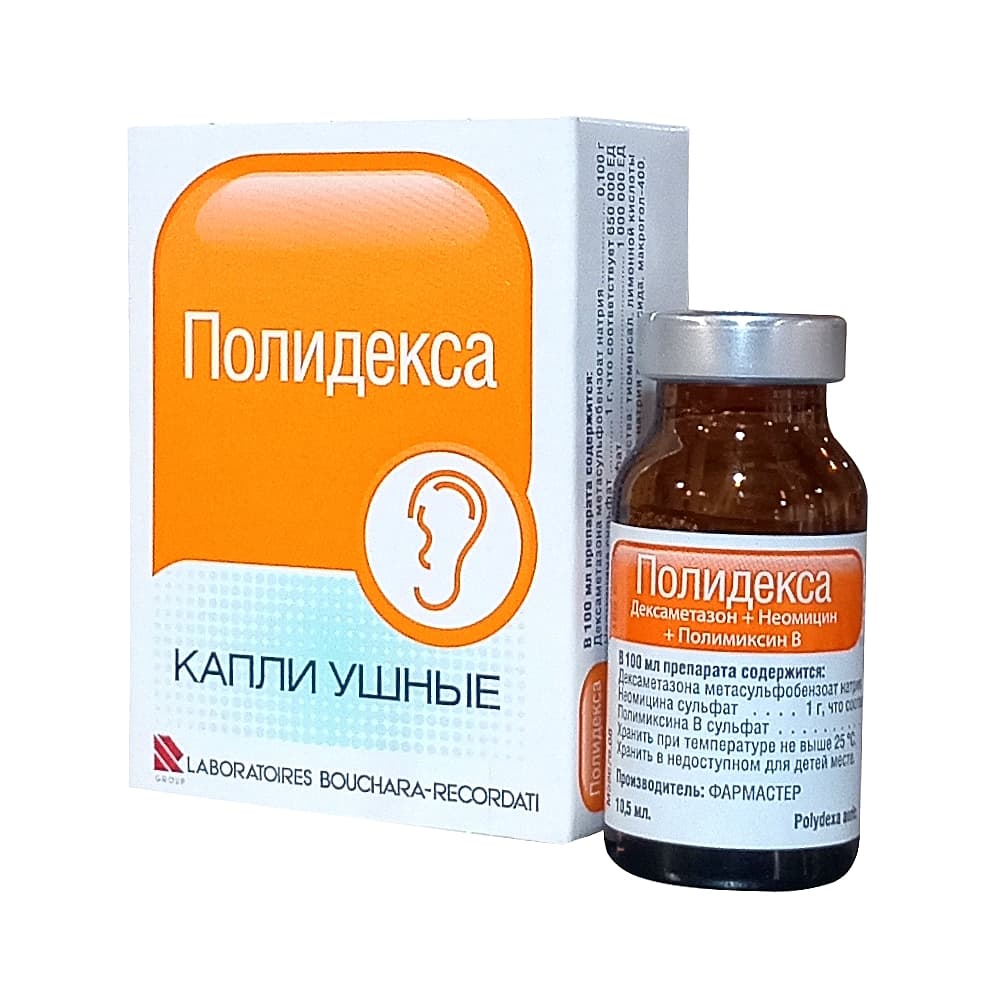 Комбинированный препарат для местного применения в отоларингологии. Терапевтический эффект препарата Полидекса обусловлен противовоспалительным действием дексаметазона и антибактериальным действием антибиотиков неомицина и полимиксина В. При сочетании указанных антибиотиков расширяется спектр антибактериального действия на большинство грамположительных и грамотрицательных микроорганизмов, вызывающих инфекционно-воспалительные заболевания наружного и среднего уха.