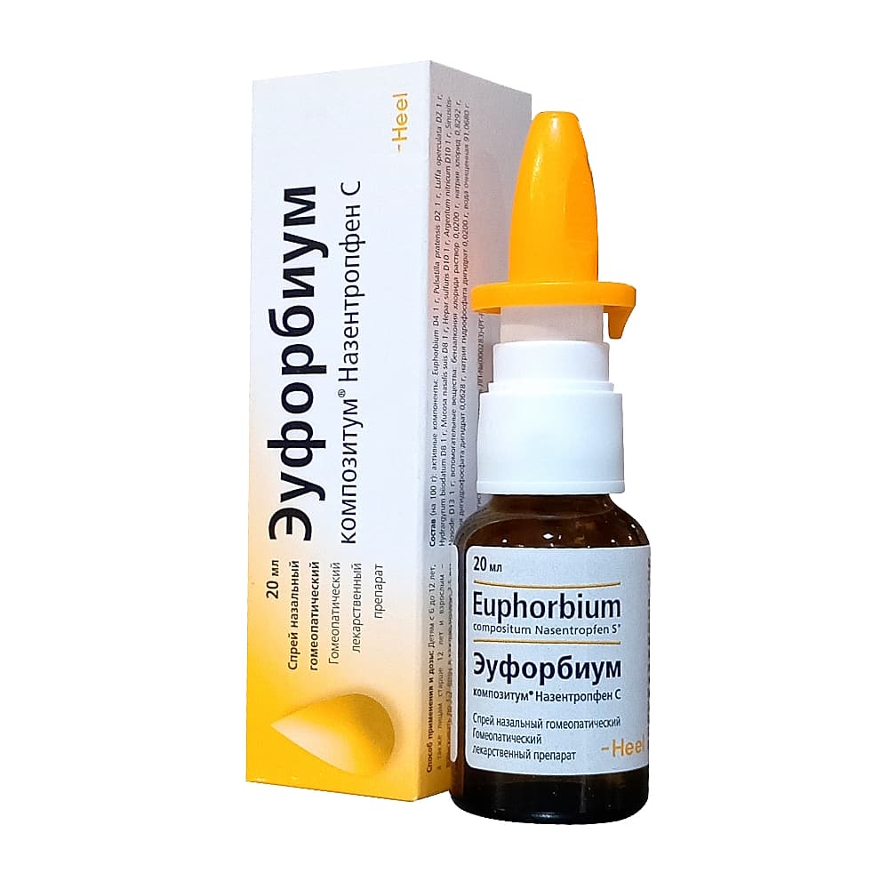 Характеристика Бренд Эуфорбиум композитум Изготовитель Biologische Heilmittel Heel GmbH Страна ГЕРМАНИЯ Рецептурный Нет Форма выпуска Спрей Беременность По назначению врача Возраст С 4-х лет
