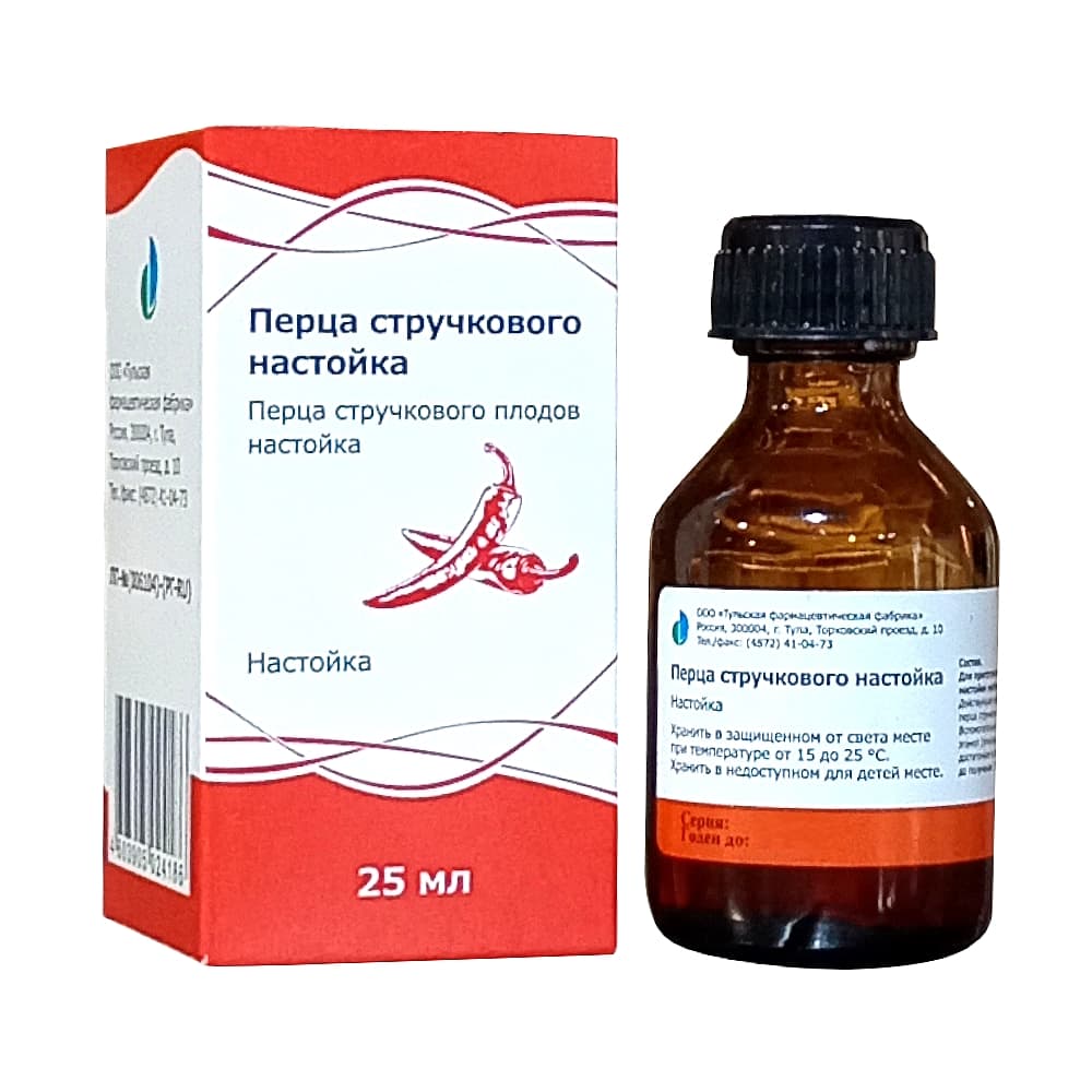 Фармакологические свойства настойки перца стручкового обусловлены содержанием алкалоида капсаицина. Препарат обладает местным раздражающим, отвлекающим и разогревающим действием, вызывая усиление местного кровотока в коже, воздействуя на болезненные процессы, локализованные также и в глубине тканей.