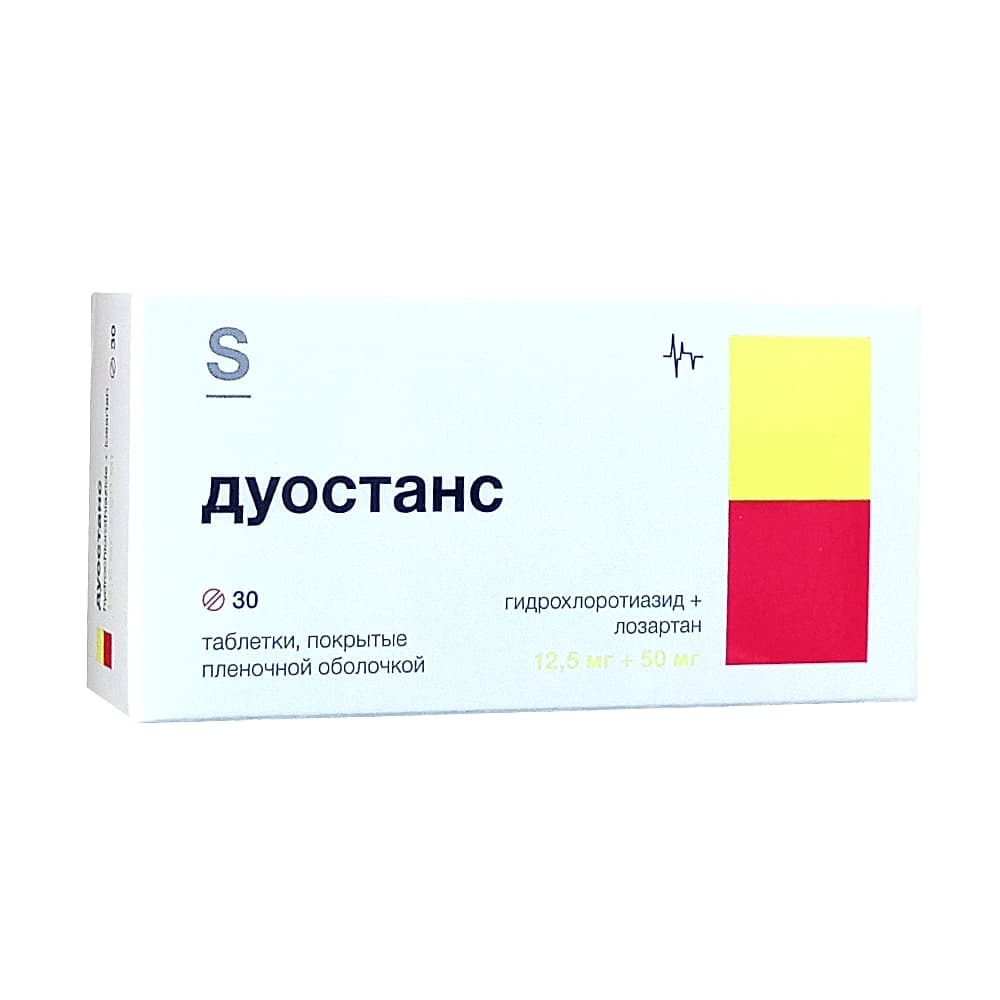 Препарат Дуостанс содержит два действующих вещества: гидрохлоротиазид, который относится к группе препаратов, называемых диуретиками (мочегонными), и лозартан, который относится к группе препаратов, называемых антагонистами рецепторов ангиотензина II. Оба действующих вещества способствуют снижению артериального давления.