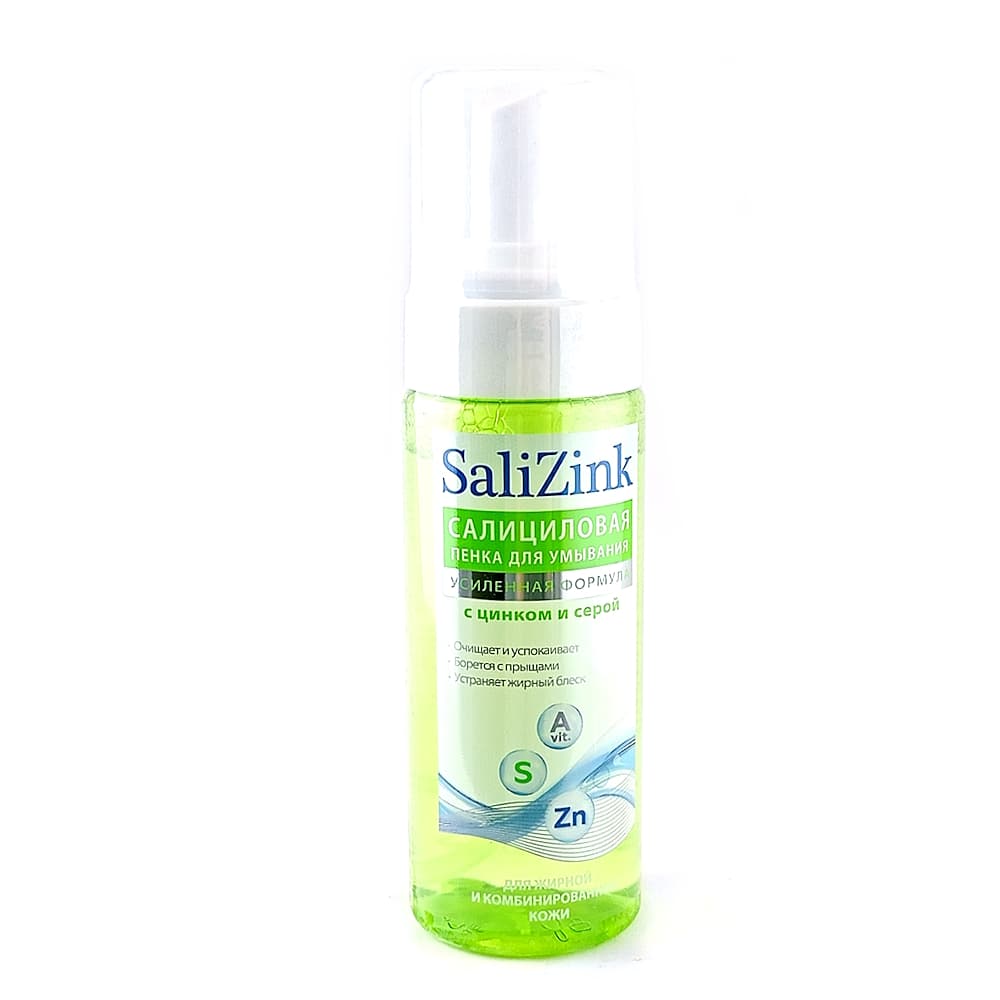 Пенка для умывания SALIZINK специально разработана для жирной и комбинированной кожи, склонной к появлению прыщей. Средство глубоко очищает кожу от загрязнений, уменьшает жирный блеск и количество несовершенств. Салициловая кислота и цинк, входящие в состав, обладают мощным антибактериальным и антисептическим действием, уменьшают воспаления, регулируют работу сальных желез и препятствуют появлению прыщей. Экстракты Календулы и Лопуха ускоряют заживление кожи, выводят токсины, снимают покраснение и зуд. Пенка не содержит спирт.