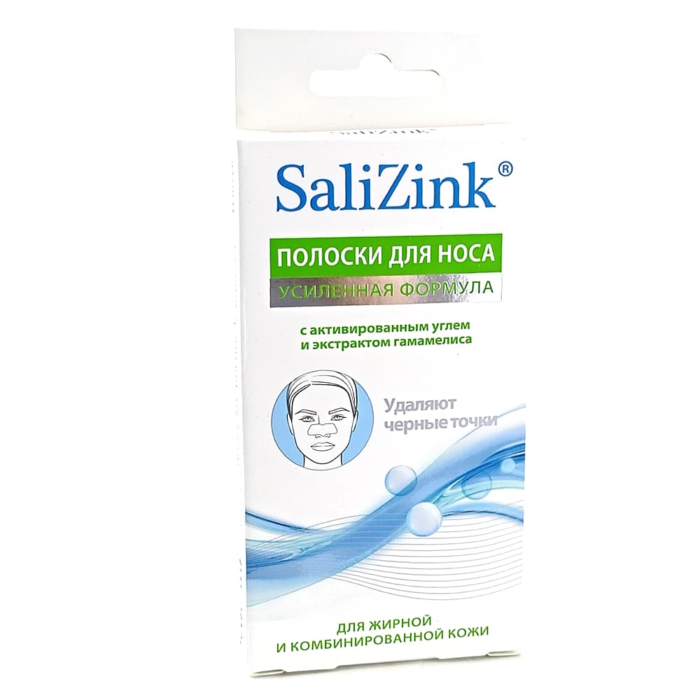 SaliZink Полоски для носа очищающие с активированным углем и экстрактом гамамелиса, 6 шт