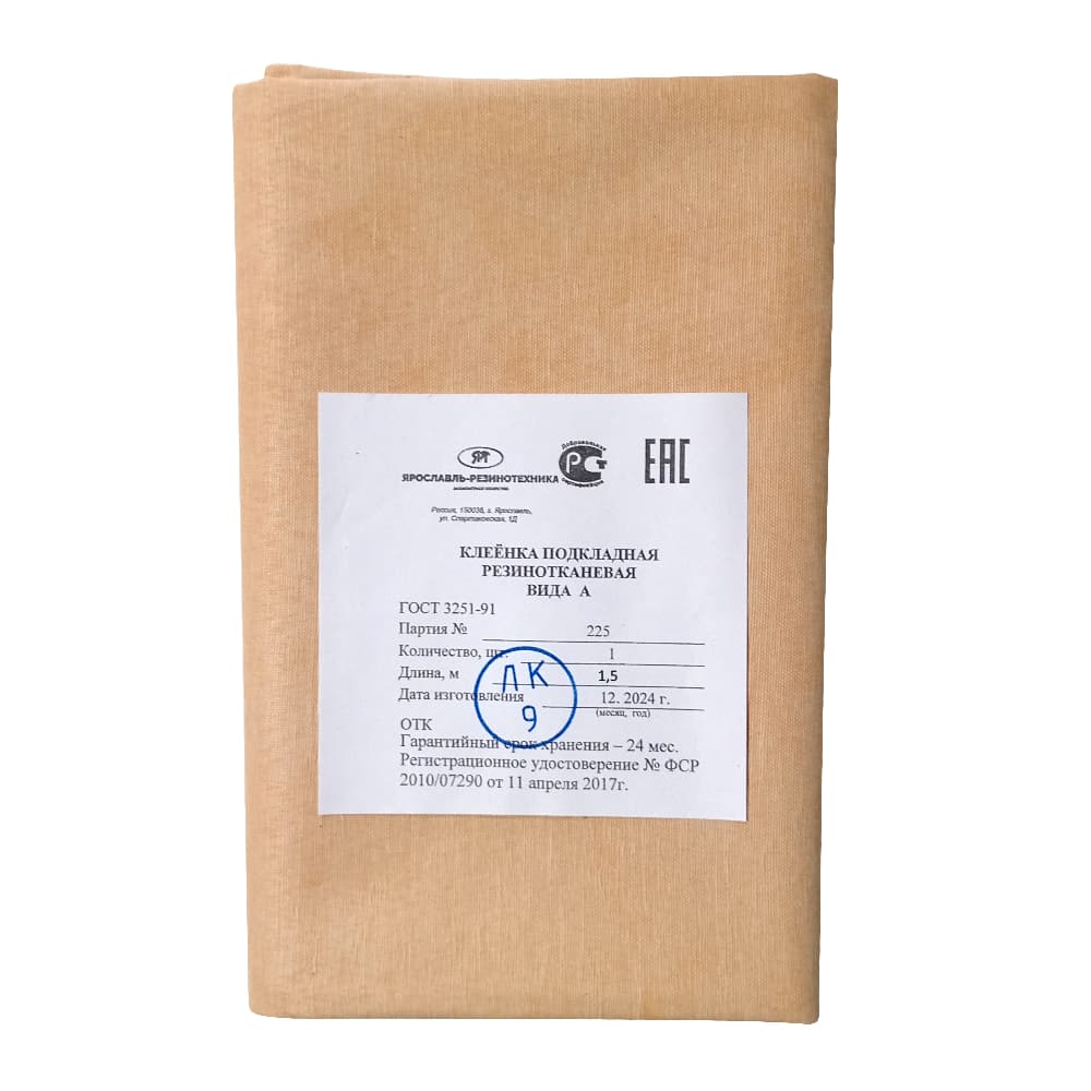 Клеенка подкладная с односторонним резиновым покрытием изготавливается путем нанесения резины на хлопчатобумажную основу (Мадапола́м) или синтетическую (полиэфирно-вискозную) ткань шириной 80 см, с применением различных пигментных оттенков (оранжевого, зеленого, белого, серого и др.), имеющей соответствующее разрешения органов здравоохранения.