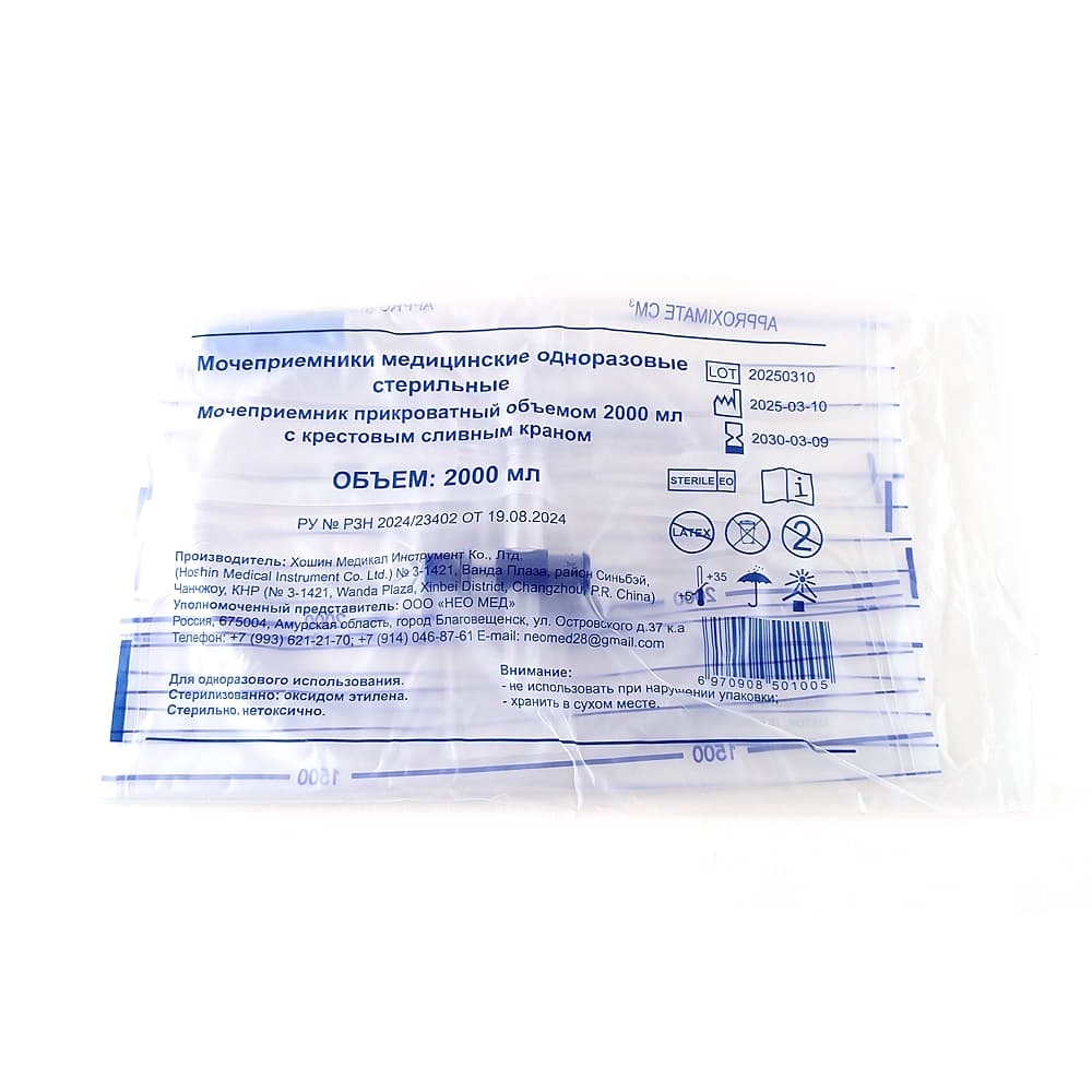 Мочеприемники прикроватные 2000 мл. с Крестообразным сливным клапаном предназначены для забора мочи через катетер из мочевого пузыря. Он стерильный, каждый мочеприемник упакован в индивидуальную упаковку. Мочеприемник одноразового применения.