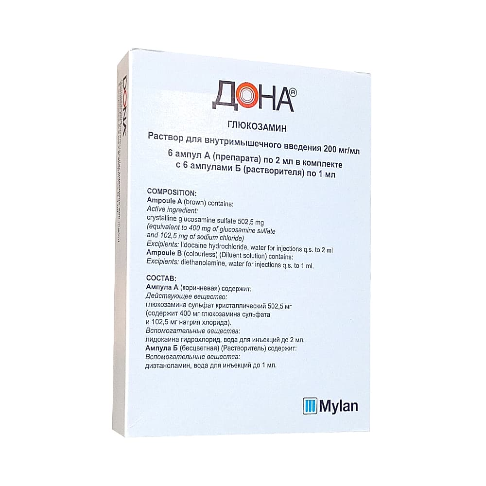 ДОНА - обладает противовоспалительным и обезболивающим действием, восполняет эндогенный дефицит глюкозамина, стимулирует синтез протеогликанов и гиалуроновой кислоты синовиальной жидкости; увеличивает проницаемость суставной капсулы, восстанавливает ферментативные процессы в клетках синовиальной мембраны и суставного хряща. Способствует фиксации серы в процессе синтеза хондроитинсерной кислоты, облегчает нормальное отложение кальция в костной ткани, тормозит развитие дегенеративных процессов в суставах, восстанавливает их функцию, уменьшая суставные боли.