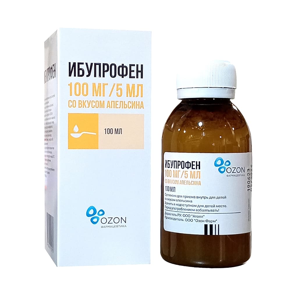 Ибупрофен суспензия для детей 100 мг/5 мл, 100 мл. Апельсин