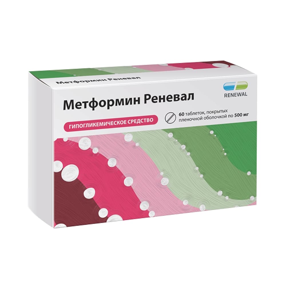 Метформин Реневал, 500 мг, таблетки, покрытые пленочной оболочкой