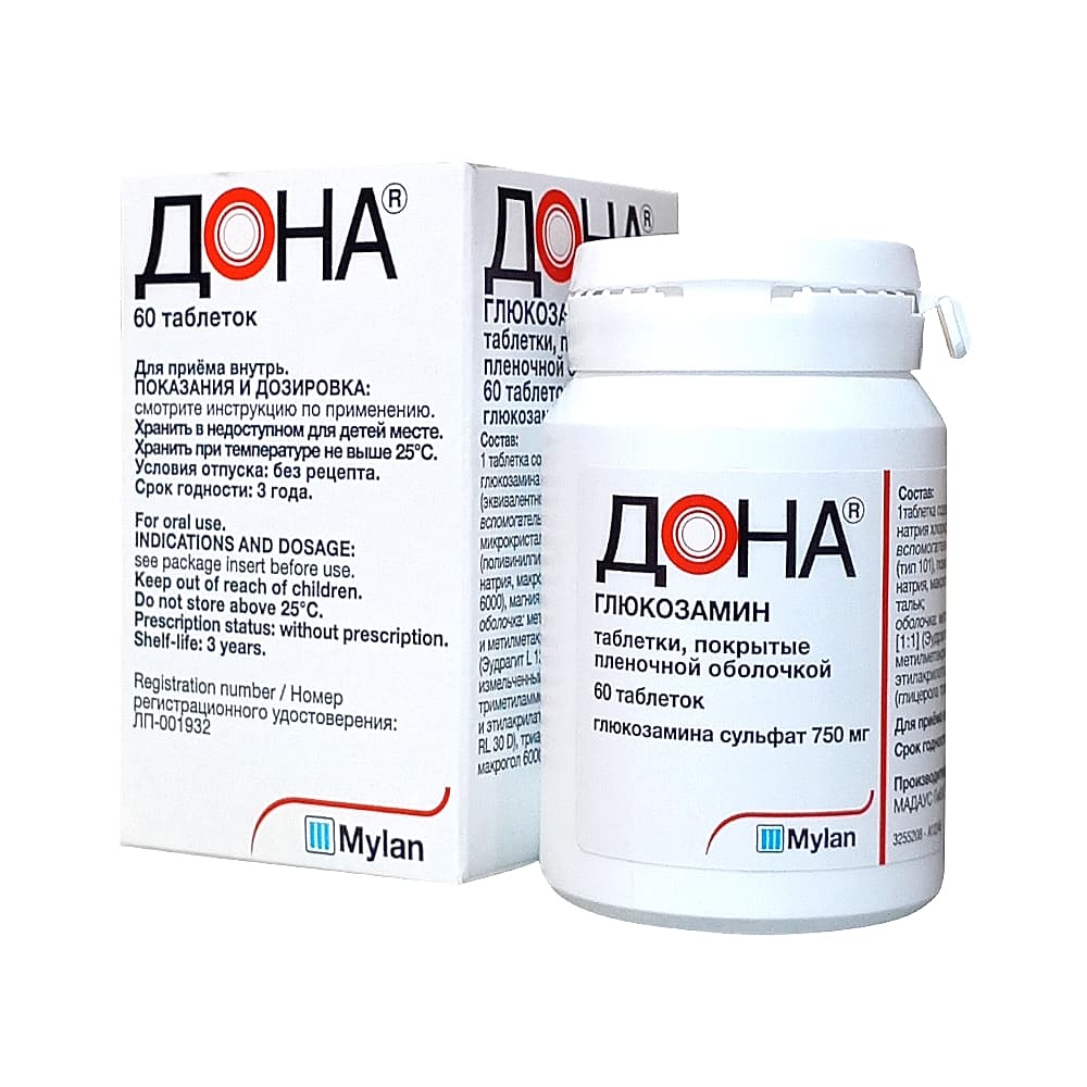 ДОНА® обладает противовоспалительным и обезболивающим действием, восполняет эндогенный дефицит глюкозамина, стимулирует синтез протеогликанов суставного хряща и гиалуроновой кислоты синовиальной жидкости, тем самым стимулируя регенерацию хрящевой ткани; увеличивает проницаемость суставной капсулы, восстанавливает ферментативные процессы в клетках синовиальной мембраны и суставного хряща. Способствует фиксации серы в процессе синтеза хондроитинсерной кислоты, облегчает нормальное отложение кальция в костной ткани, тормозит развитие дегенеративных процессов в суставах, восстанавливает их функцию, уменьшая суставные боли. Доказана эффективность глюкозамина сульфата уже через 2-3 недели от начала применения, при этом продолжительность эффекта составляет от 6 месяцев до 3 лет в отличие от нестероидных противовоспалительных препаратов (НПВП). Ежедневное непрерывное лечение глюкозамина сульфатом в течение 3 лет показало прогрессивное улучшение симптомов и задержку структурных изменений сустава, что определяется с помощью обычной рентгенографии. Глюкозамина сульфат продемонстрировал хорошую переносимость как в коротких, так и в длительных курсах лечения.