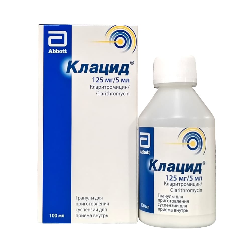 Клацид 125 мг/5 мл, гранулы для приготовления суспензии для приема внутрь, 100 мл.