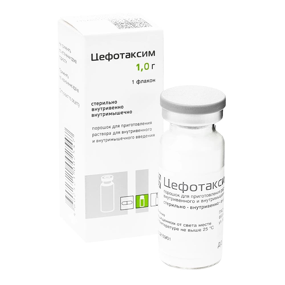 Указания по совместимости: цефотаксим не должен смешиваться с другими антибиотиками (в том числе, аминогликозидами), как в одном шприце, так и в одном инфузионном растворе.