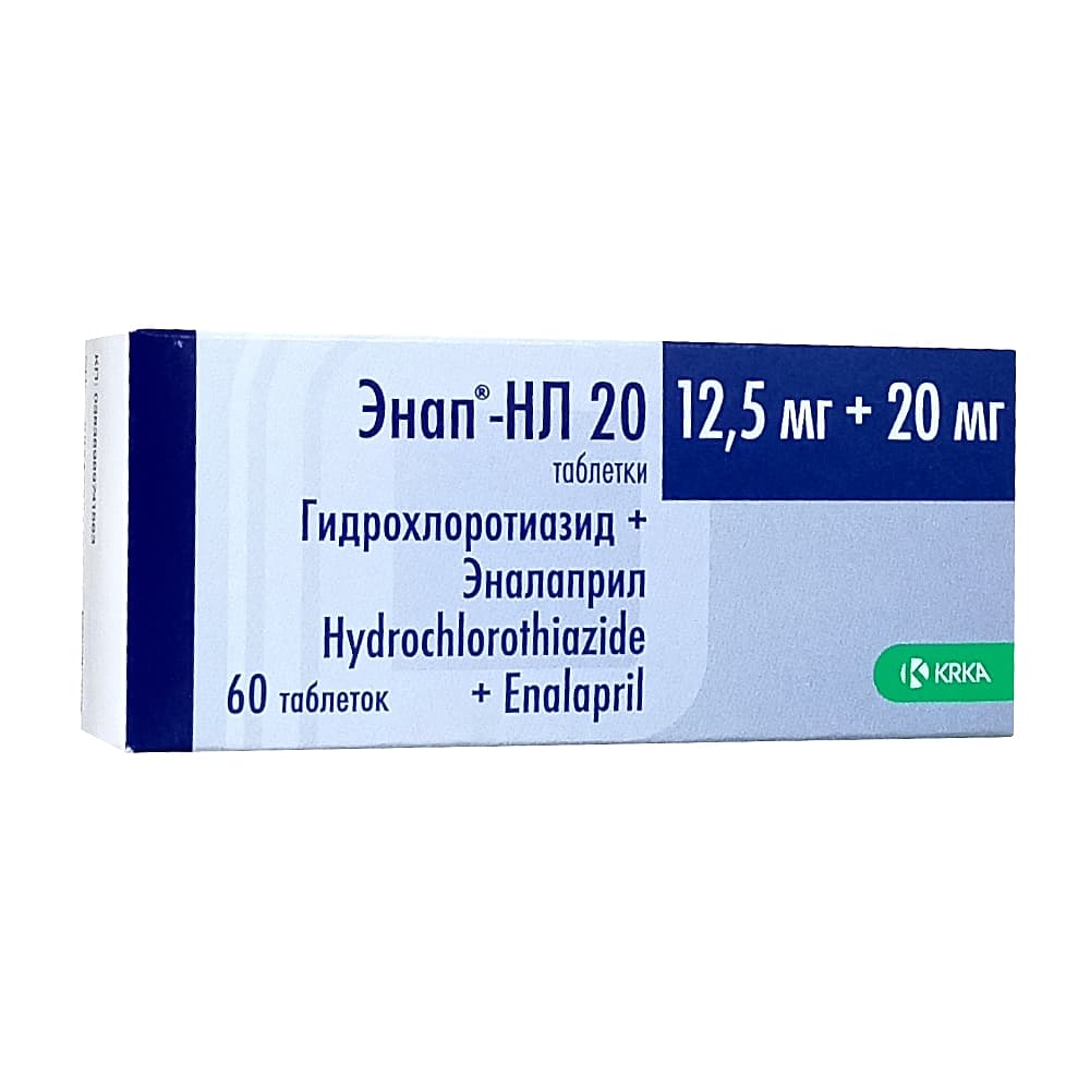 Энап-НЛ 20 таблетки 12,5мг +20мг, 60 шт