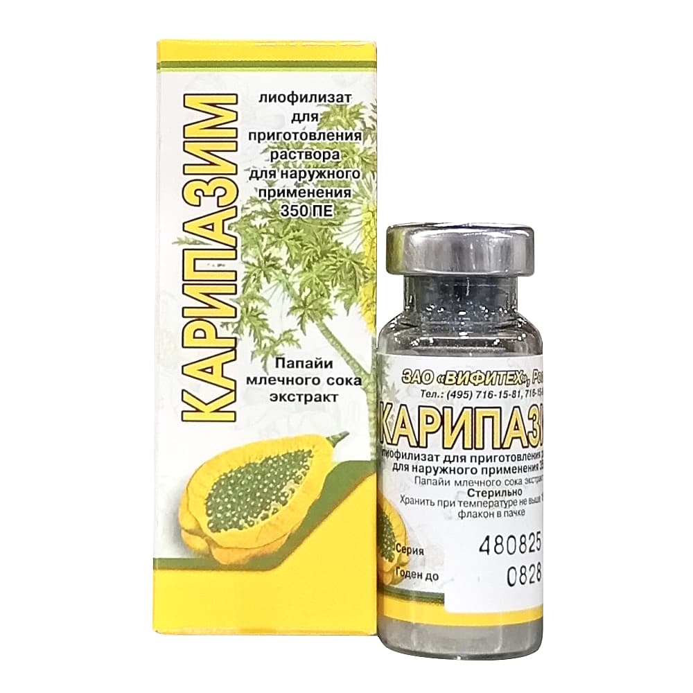 Карипазим 350 ПЕ, лиофилизат для приготовления раствора для наружного применения, 10 мл